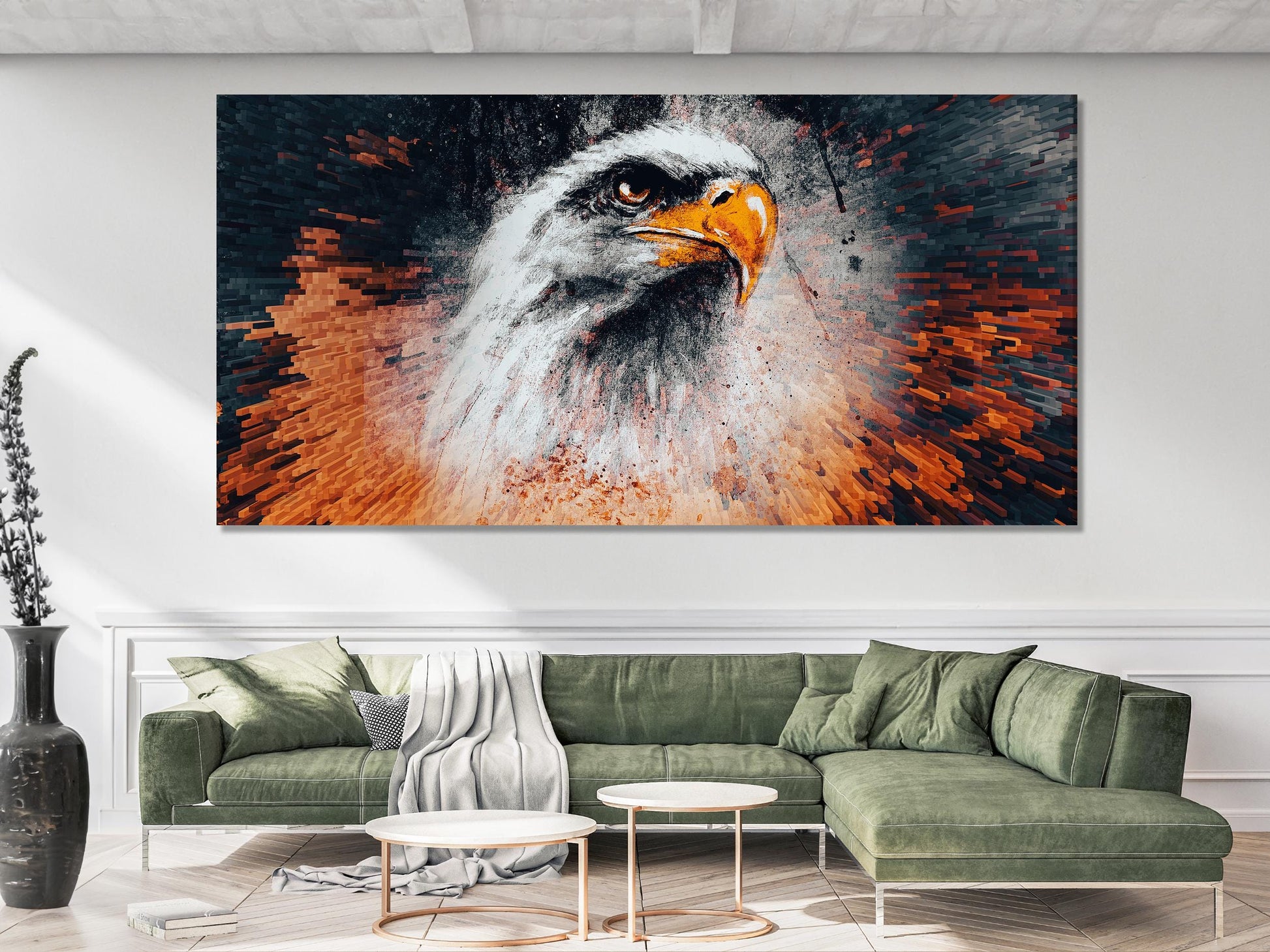 Abstrakter Adler Leinwanddruck, Mutige Wildtier Wandkunst, großes modernes Adler Kunstwerk, übergroße Tierleinwand für Wohnzimmer Dekor