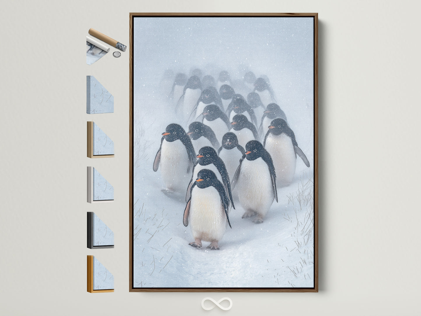 Dekorieren Sie Ihren Raum mit hochwertigen Leinwandbildern und Postern mit einer bezaubernden Pinguinparade. Eine Mischung aus Tierkunst und Winterlandschaft, perfekt als Wanddekoration für Zuhause und Kinderzimmer. Jedes Werk wird mit archivarischer Tinte auf Leinwand und Papier in Museumsqualität gedruckt. Das sorgt für satte Farben und gestochen scharfe Details – ideal für eine professionelle Galerieästhetik.