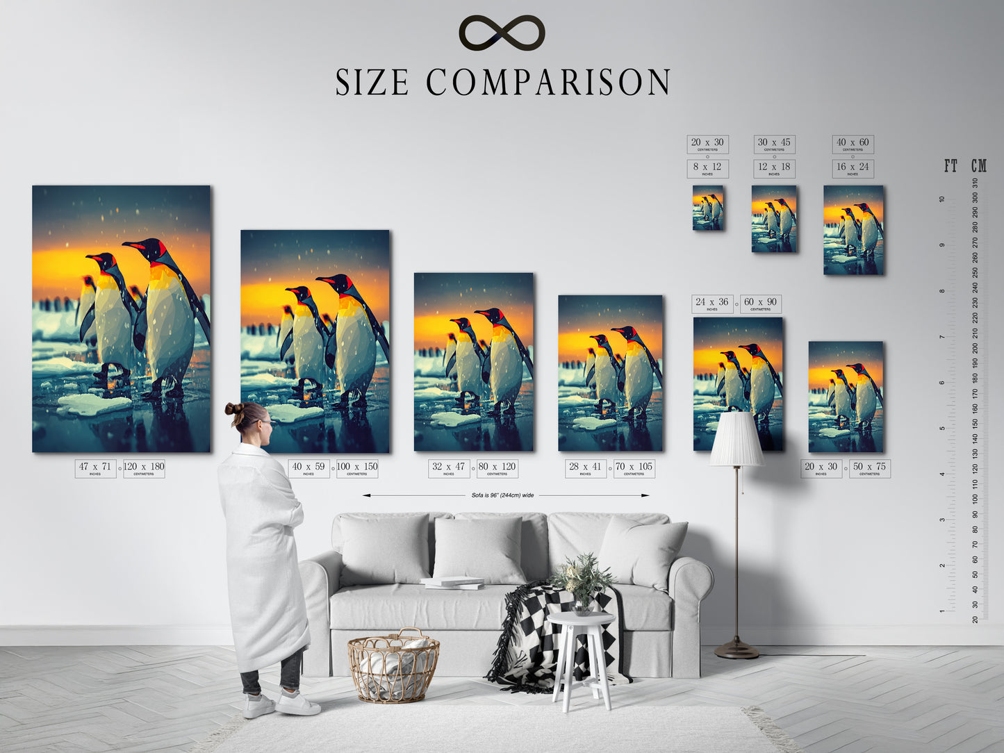 Measure your wall and choose your finish (Poster Print, Gallery Wrapped Canvas, or Canvas with Floating Frame). Not sure on scale? Ask for a FREE room mockup.