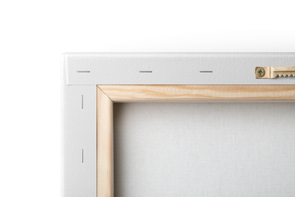 The canvas is stretched onto the stretcher frame and clipped onto the rear side of it. This means that the image content is pulled over the edges so that the image can be hung up without a frame.