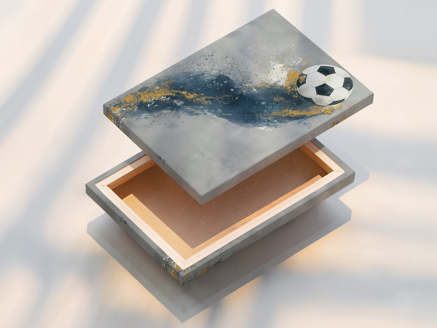 Soccer Ball Canvas Print - Abstract Sports Wall Art, Blue & Gold Athletic Decor for Boys Room & Game Room