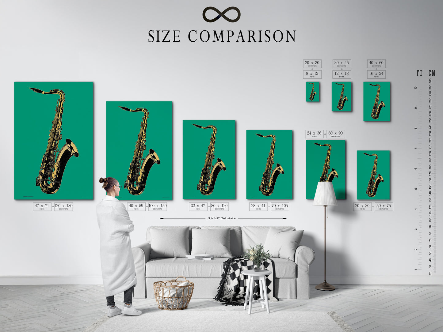Measure your wall and choose your finish (Poster Print, Gallery Wrapped Canvas, or Canvas with Floating Frame). Not sure on scale? Ask for a FREE room mockup.