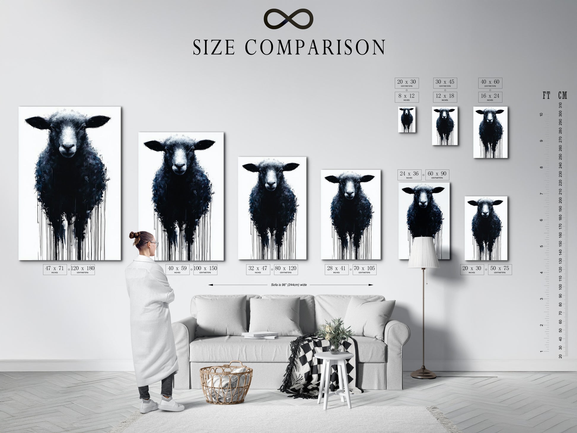 Black Sheep Art Print - Modern Farmhouse Wall Art, Minimalist Animal Painting, Contemporary Home Decor, Dripping Paint Style