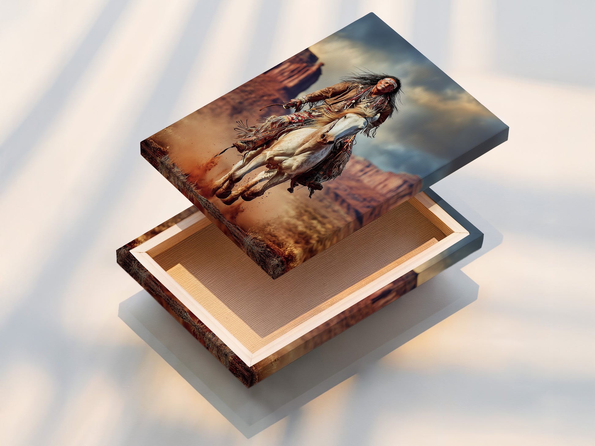 Native American Warrior Canvas Print - Western Horse Art, Southwestern Wall Decor for Office Man Cave
