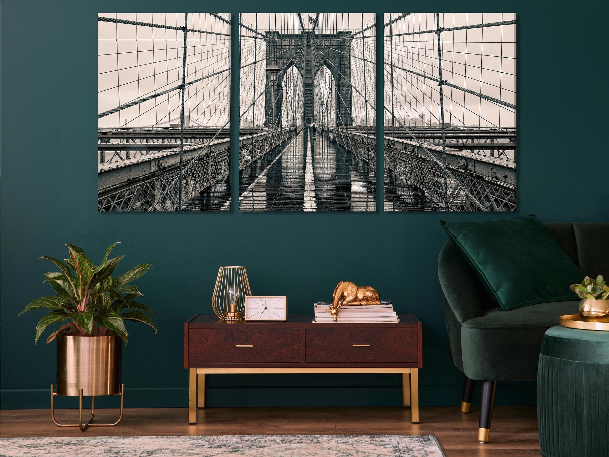 This captivating black-and-white canvas print captures the timeless beauty of the Brooklyn Bridge, one of New York City's most iconic landmarks. The detailed lines of the suspension cables and the bridge's towering arches evoke a sense of urban grandeur. Perfect for those who love industrial decor or urban landscapes, this large artwork adds sophistication and classic New York charm to any living room, office, or loft space.