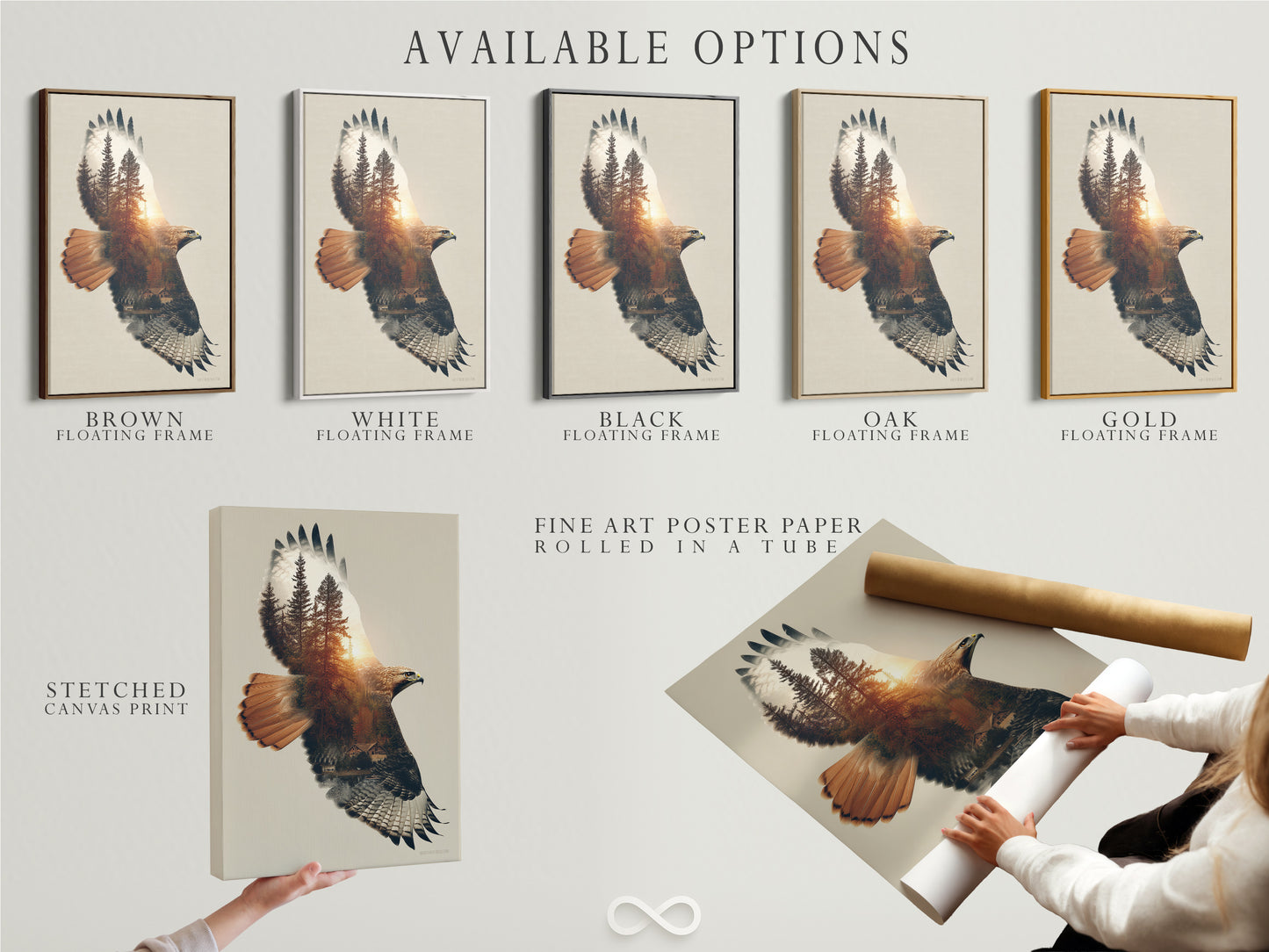 Eagle Forest Art Print - Double Exposure Wildlife Wall Art, Nature Canvas Print for Office Wall Decor