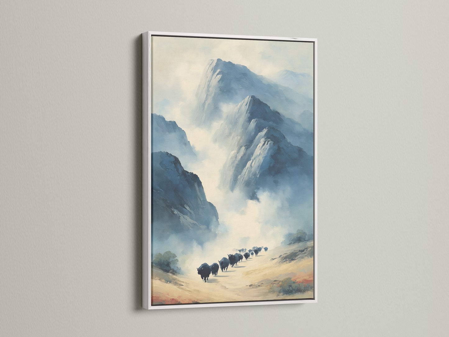 Buffalo Canvas Print - Mountain Landscape Wall Art, Neutral Tone Animal Artwork for Office Decor