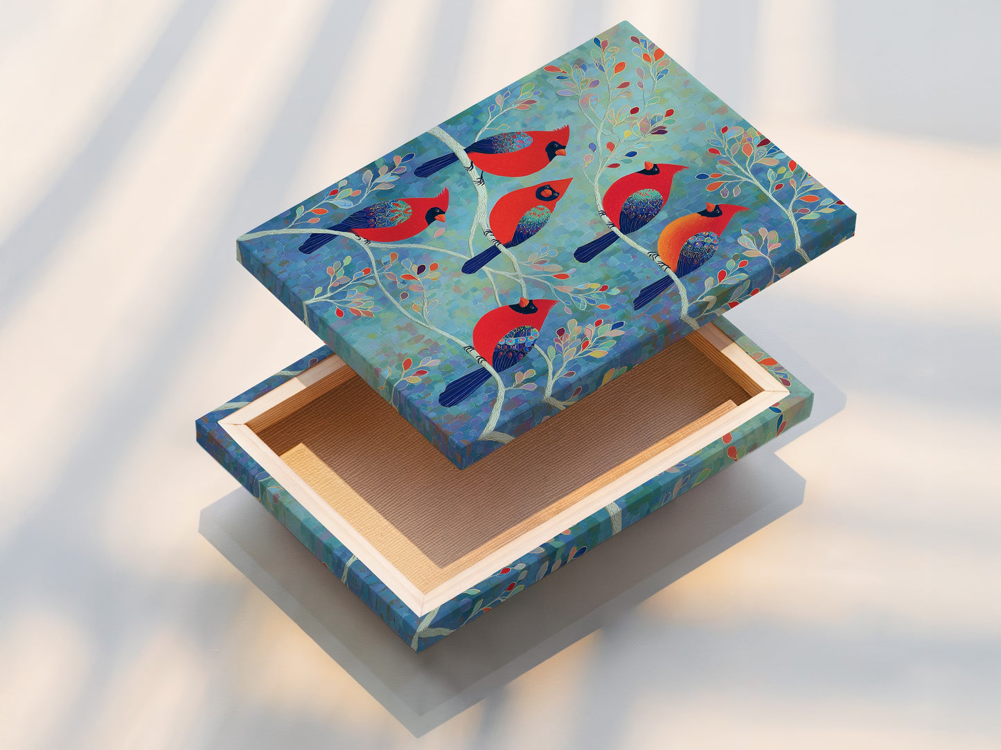 Cardinal Birds Canvas Print - Teal Blue Nature Wall Art, Modern Birdwatcher Gift, Colorful Bird Art