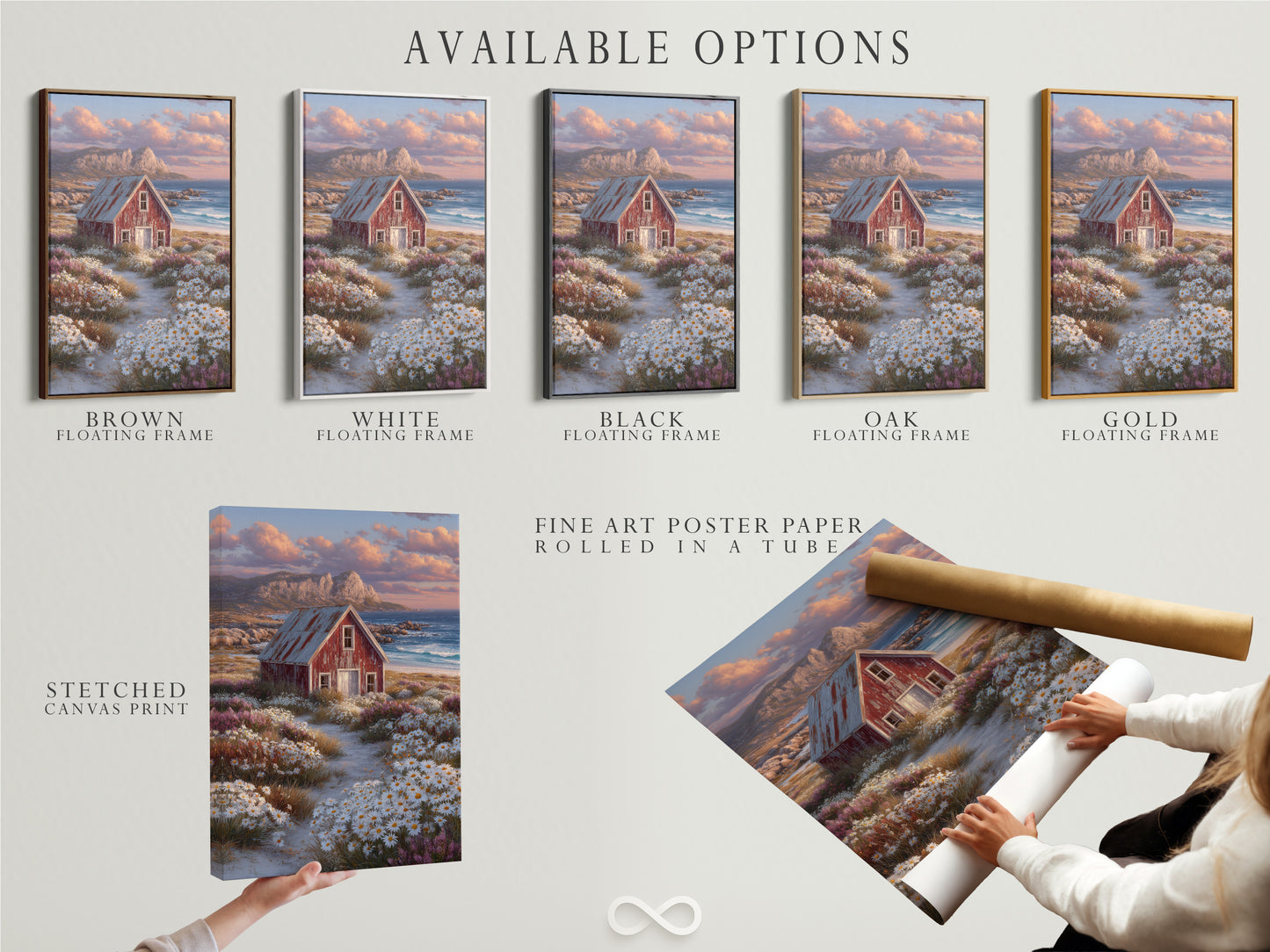 Ornez votre maison avec notre impression sur toile de grange côtière et art mural encadré, mêlant art sur toile à un charme rustique pour des intérieurs et espaces de travail sophistiqués. Chaque tirage utilise une encre pigmentaire archivistique sur une toile 100% coton, offrant des tons riches et une esthétique prête pour une galerie. Parfaite décoration murale pour les salons, chambres, couloirs et bureaux.