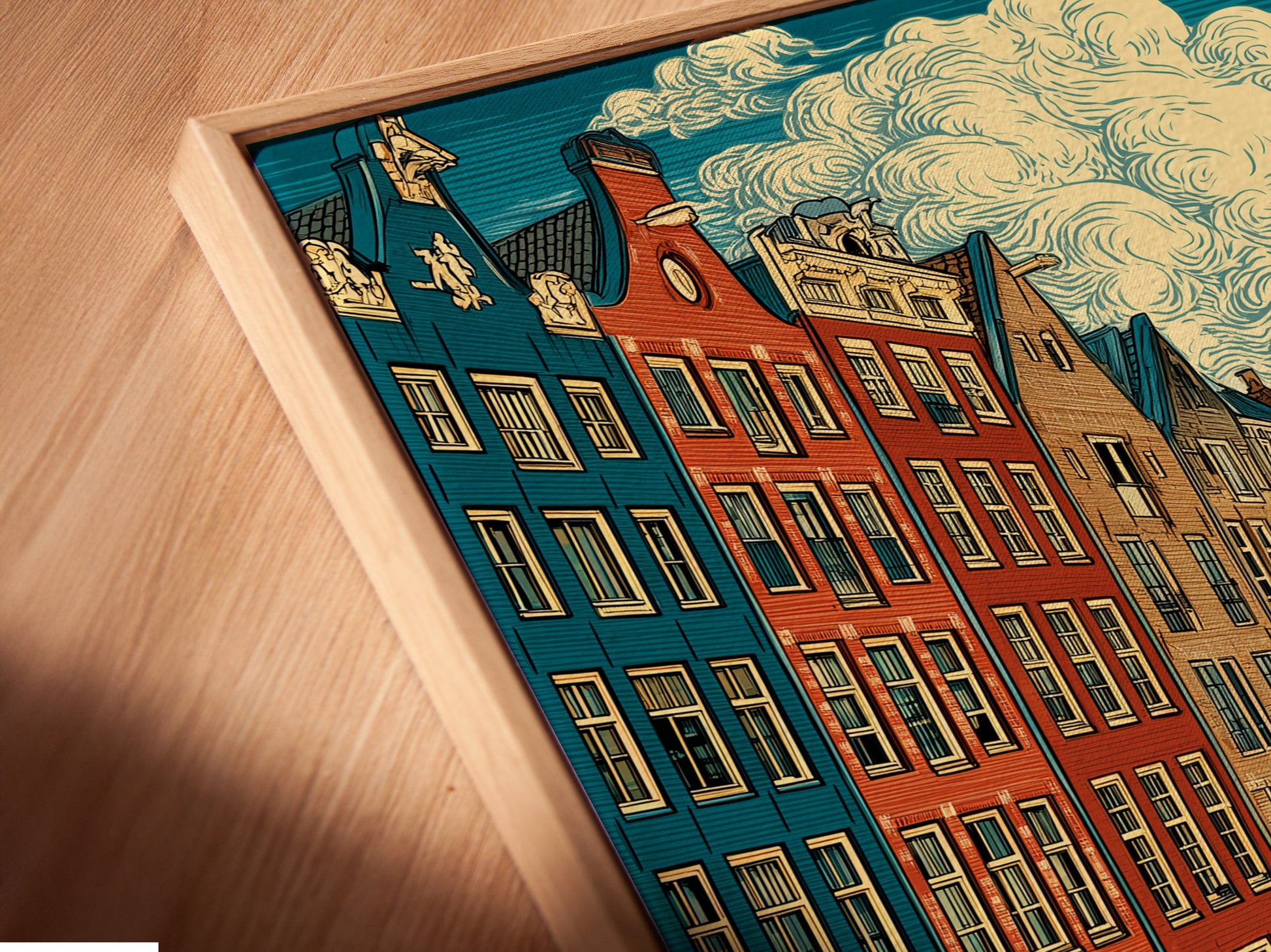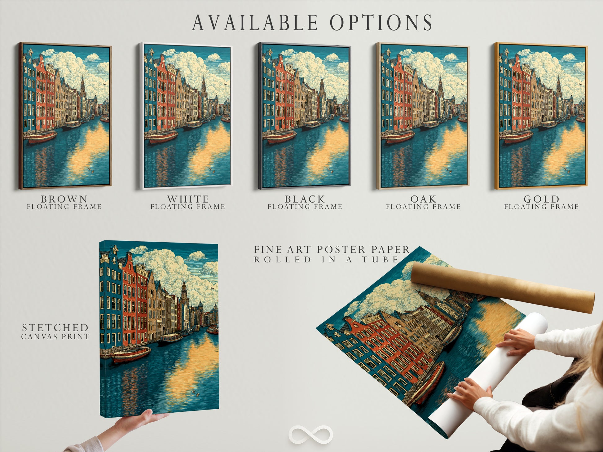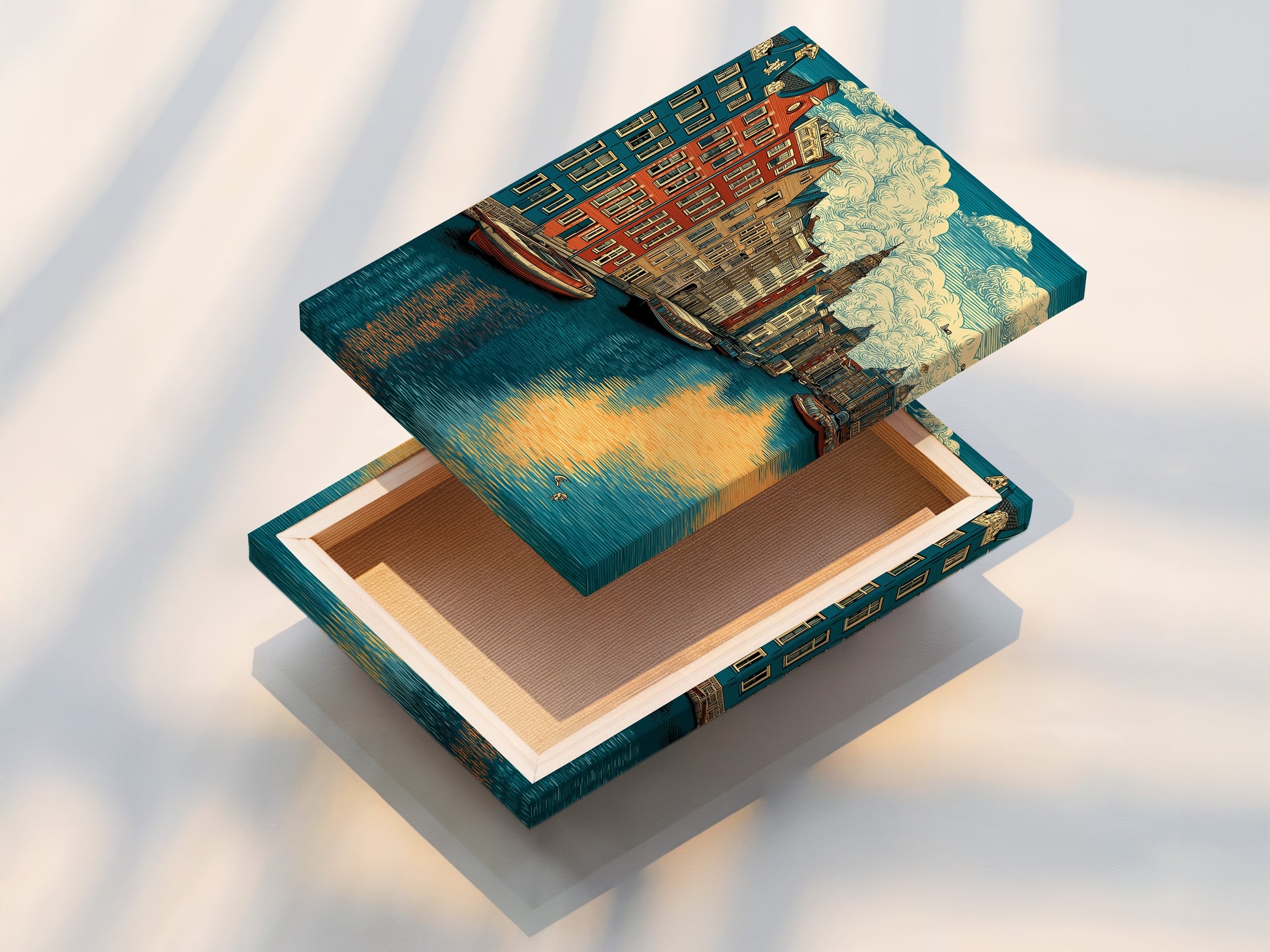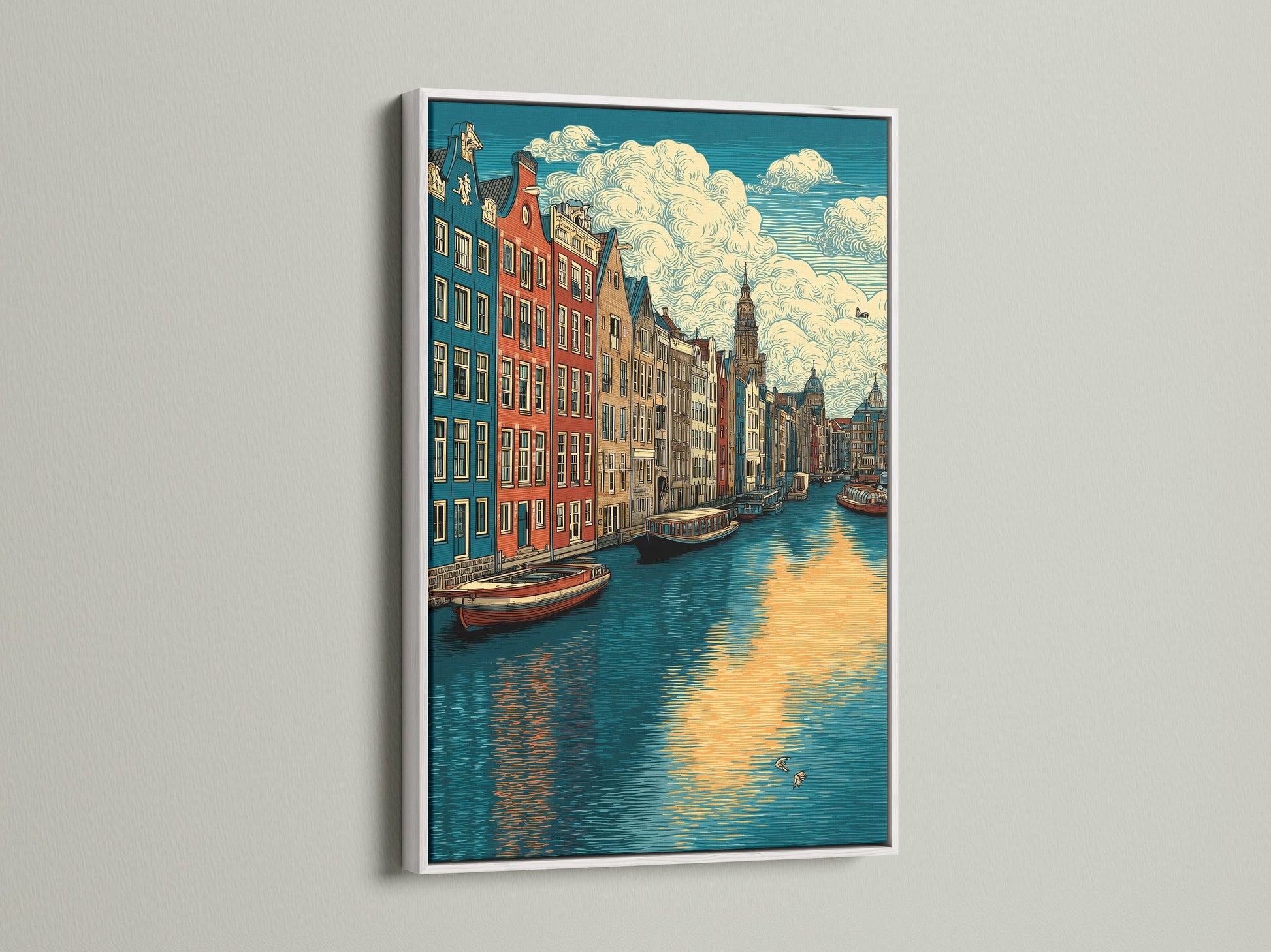 Amsterdam Art Print, Dutch Canal Art, Cityscape Canvas, Travel Poster, European Wall Art, Teal and Orange Art, Living Room Art, Office Decor, Architecture Print, Vintage Cityscape, Dutch Architecture Art, Canal Boat Art, Europe Travel Art, New Home Gift
