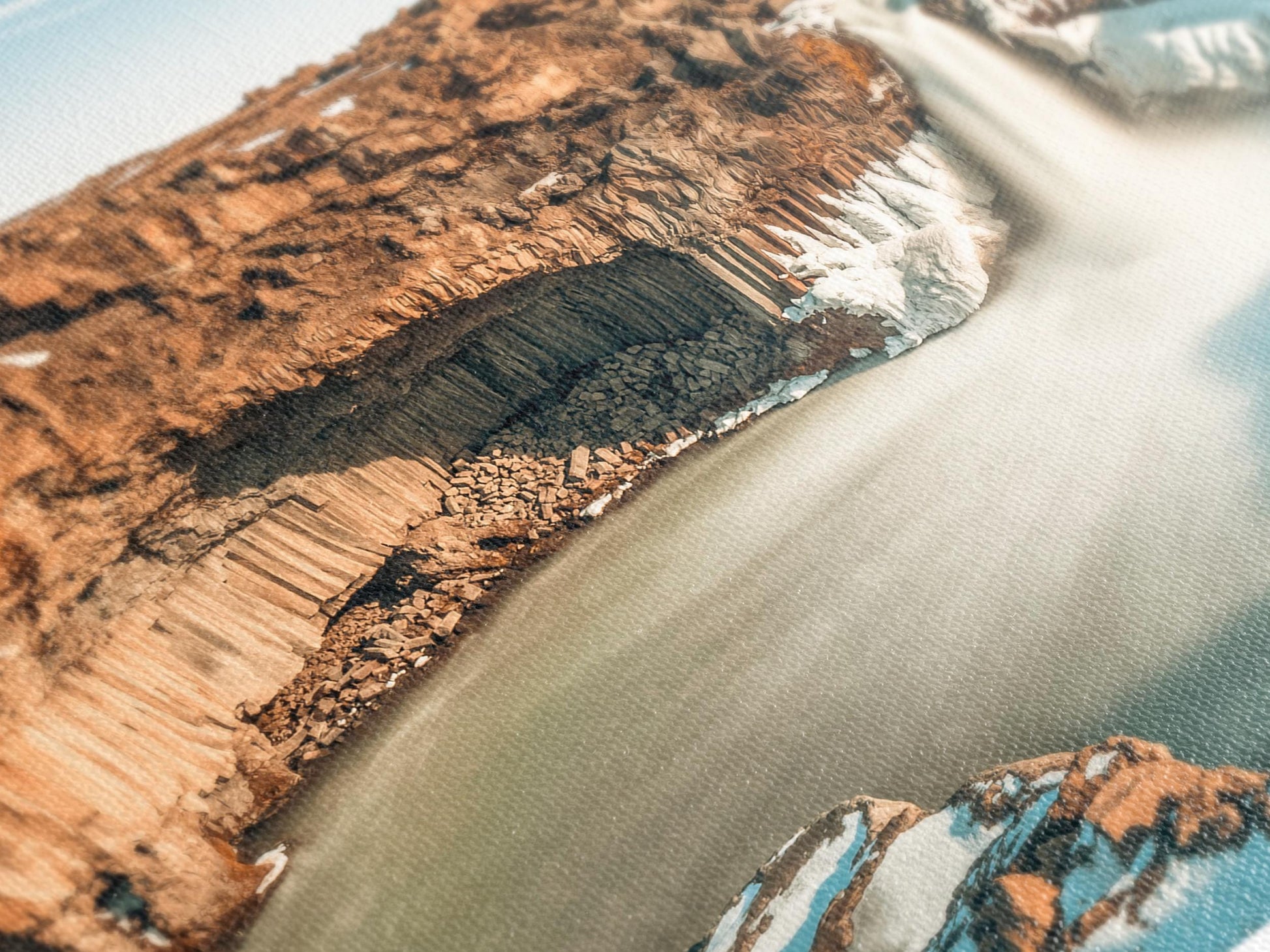 이 매혹적인 캔버스 프린트는 아이슬란드의 극적인 알데이야르포스 폭포를 담아냈습니다. 험준한 아이슬란드 현무암 지형 사이로 쏟아지는 물줄기가 눈 덮인 지형에 둘러싸여 있습니다. 얼음처럼 차가운 질감과 흐르는 물의 강렬한 대비는 아이슬란드의 길들여지지 않은 대자연을 떠올리게 하는 강렬한 시각적 효과를 선사합니다. 자연 애호가나 북유럽 풍경에 영감을 받는 모든 사람에게 이상적인 이 작품은 어떤 인테리어에도 깊이와 평온함을 더합니다. 거실, 사무실, 갤러리 벽 등 어디에 두든 아이슬란드의 장엄한 풍경을 실내에 담아낼 수 있습니다.