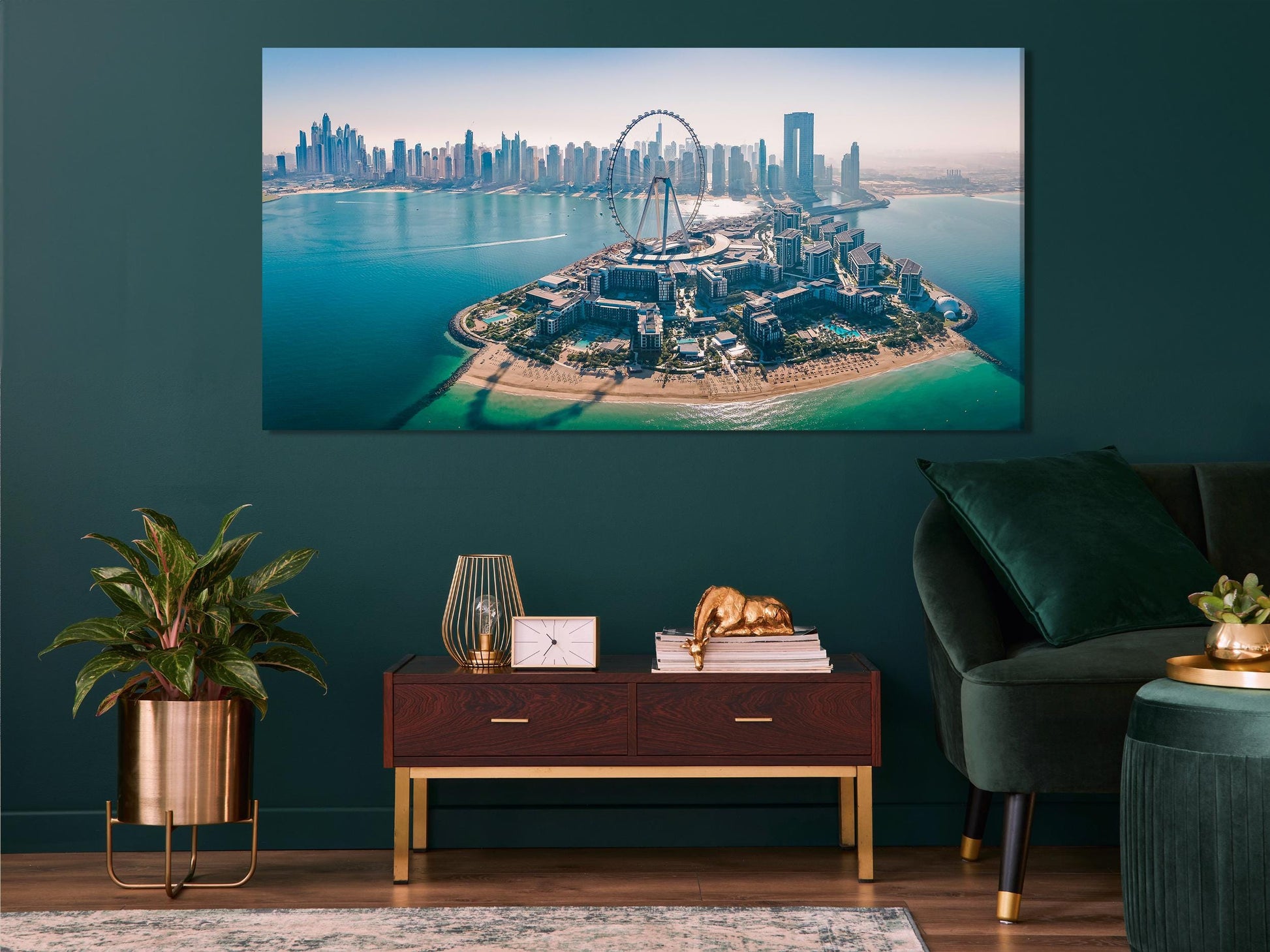 이 아름다운 캔버스 프린트는 블루워터 섬과 상징적인 아인 두바이 대관람차가 있는 두바이의 숨 막힐 듯 아름다운 스카이라인을 공중에서 담아냈습니다. 생동감 넘치는 청록색 바닷물, 현대적인 건축물의 경이로움, 그리고 광활한 도시 경관은 도시의 아름다움과 미래지향적인 디자인을 사랑하는 이들에게 매혹적인 작품입니다. 어떤 거실이나 사무실에도 현대적인 감각을 더하기에 완벽한 이 초대형 작품은 두바이의 고급스럽고 혁신적인 정신을 보여줍니다.
