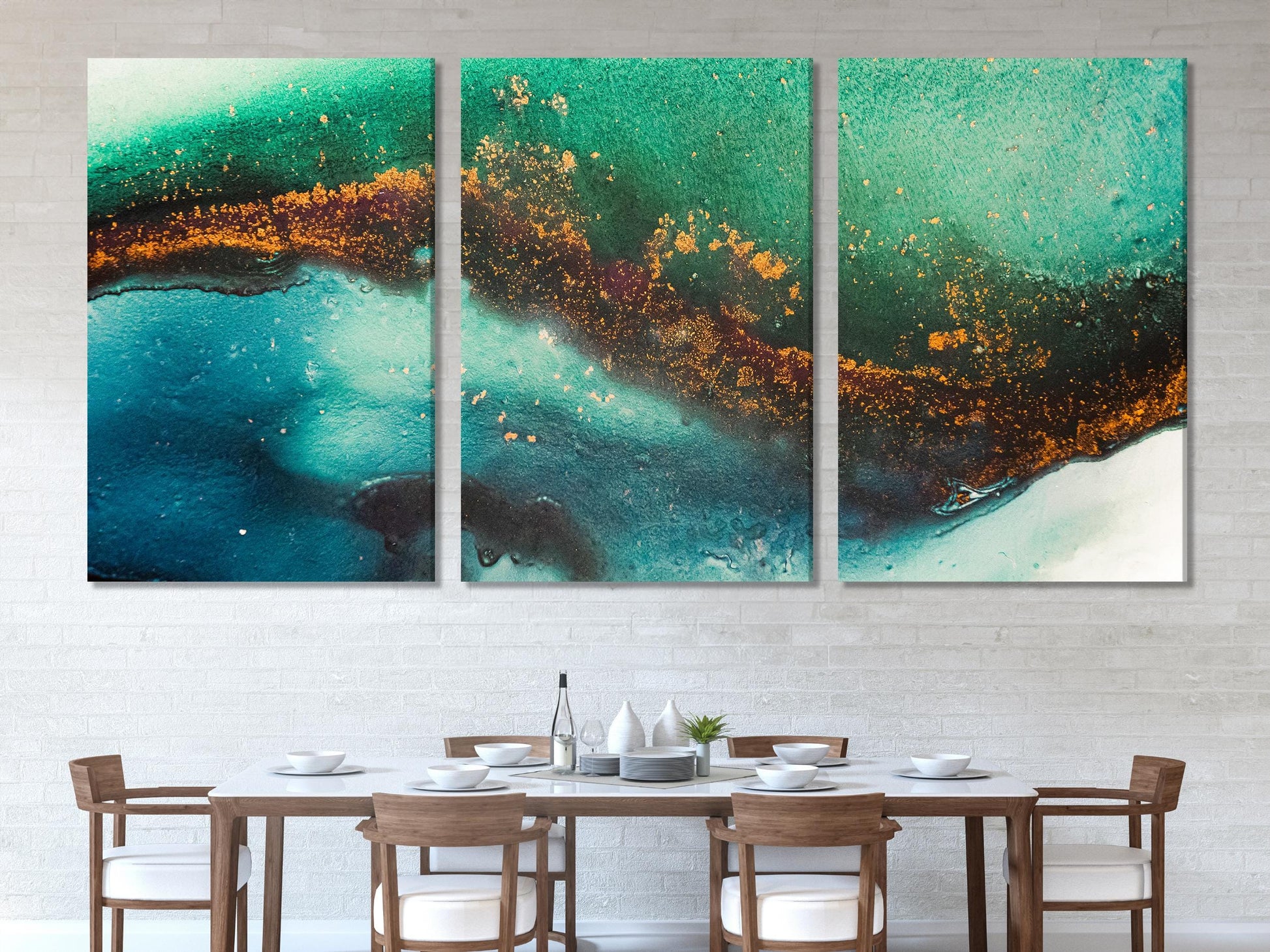 청록색과 에메랄드 그린의 이 추상 미술 작품으로 벽을 새롭게 꾸며보세요. 대담하고 우아한 미학을 선사합니다. 포인트로 활용하거나 보조적인 작품으로 활용하든, 이 모던한 멀티 패널 아트는 분명 마음을 사로잡고 영감을 불어넣어 줄 것입니다.