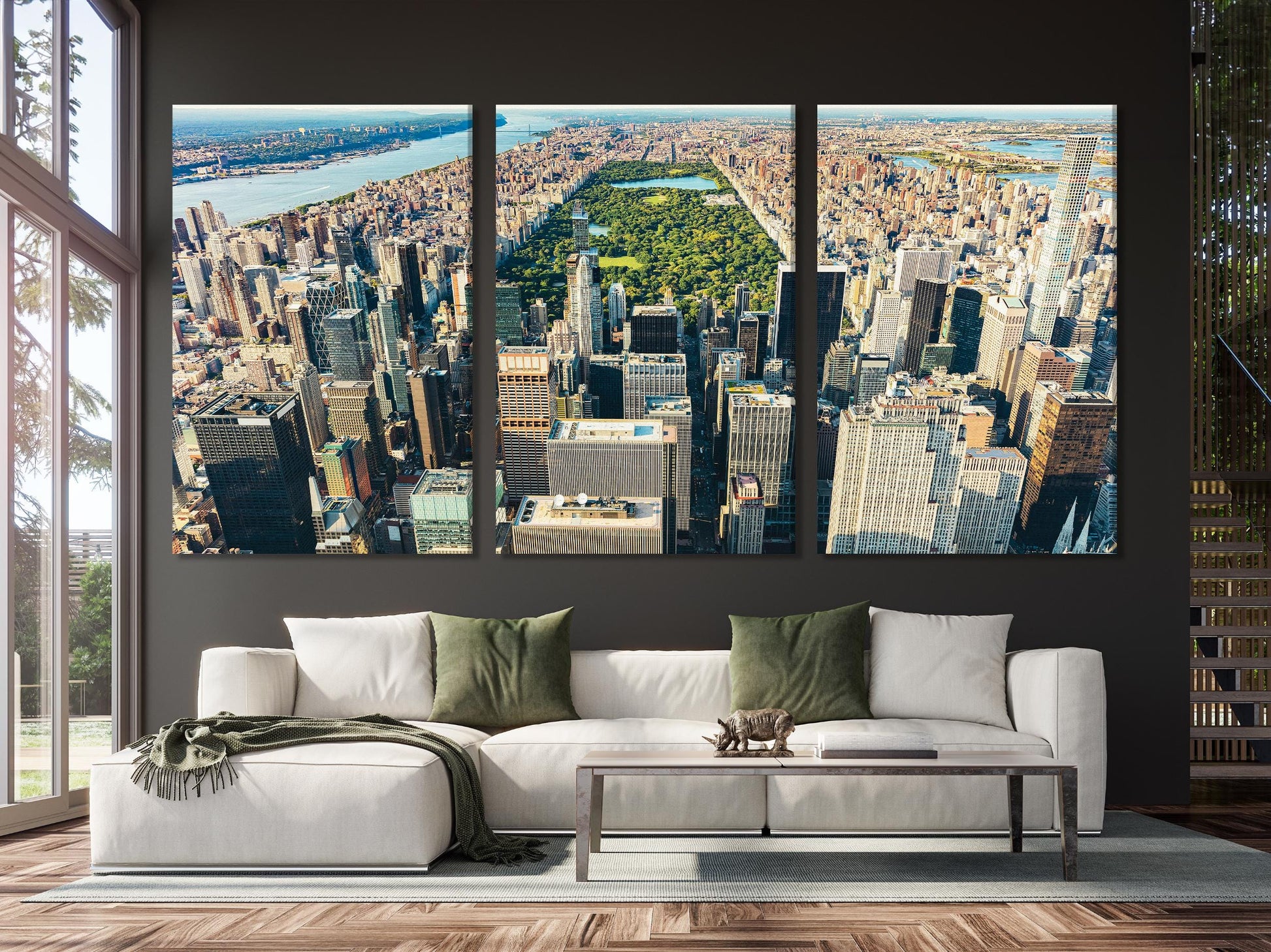 뉴욕 스카이라인 캔버스 프린트 센트럴 파크와 맨해튼의 공중 전망 예술 작품 뉴욕의 상징적인 벽 예술 뉴욕 아트 프린트 맨해튼 도시 풍경