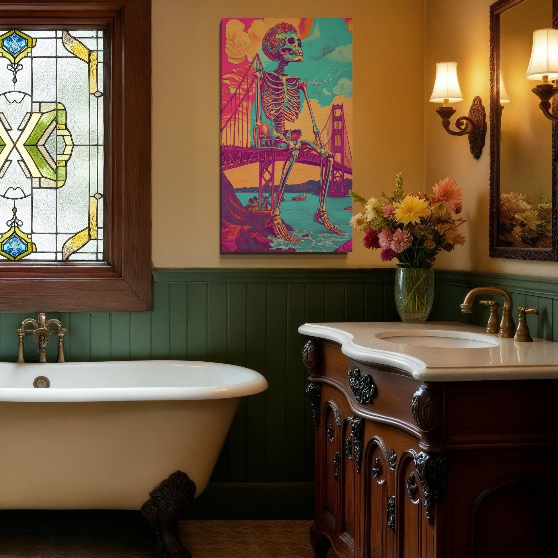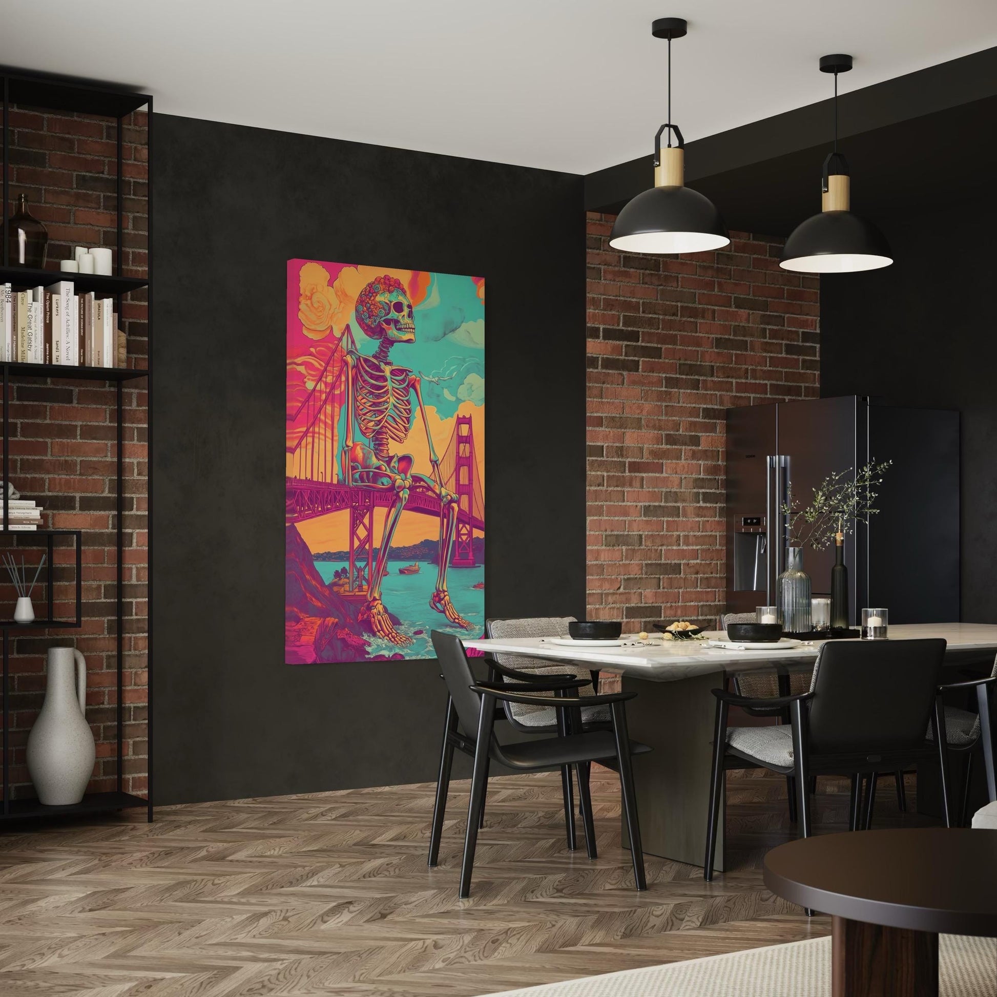 초현실주의와 문화적 영감이 융합된 이 해골 캔버스 프린트로 샌프란시스코 도시의 에너지와 환각적인 창의성을 공간에 담아보세요.