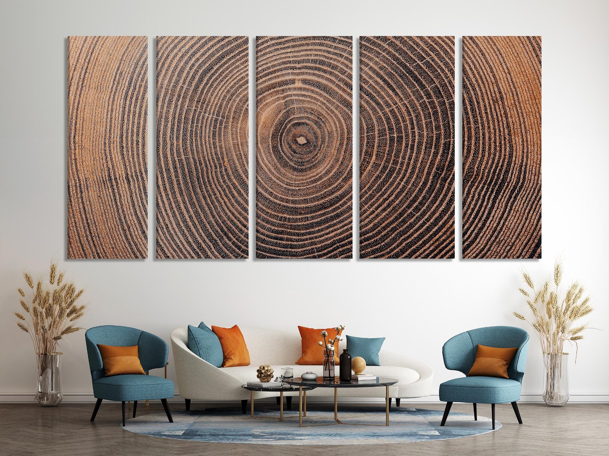 • 🌳 자연에서 영감을 얻었습니다. 세밀한 나무 고리와 나무결 무늬가 특징인 이 예술 작품은 공간과 야외를 연결하는 데 완벽합니다.