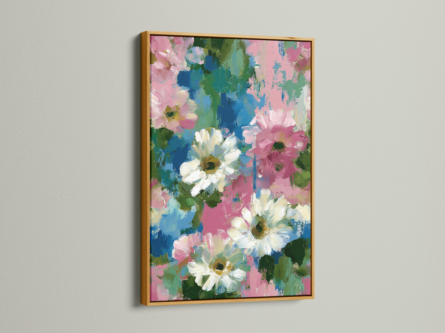 Floral Canvas Art, Flower Wall Art, Botanical Print, Pink and Blue Art, Garden Wall Decor, Modern Flower Art, Spring Wall Art, Cottagecore Decor, Bedroom Wall Art, Living Room Art, Abstract Floral Art, Daisy Art Print, Shabby Chic Art, Floral Home Decor, Pink and White Art