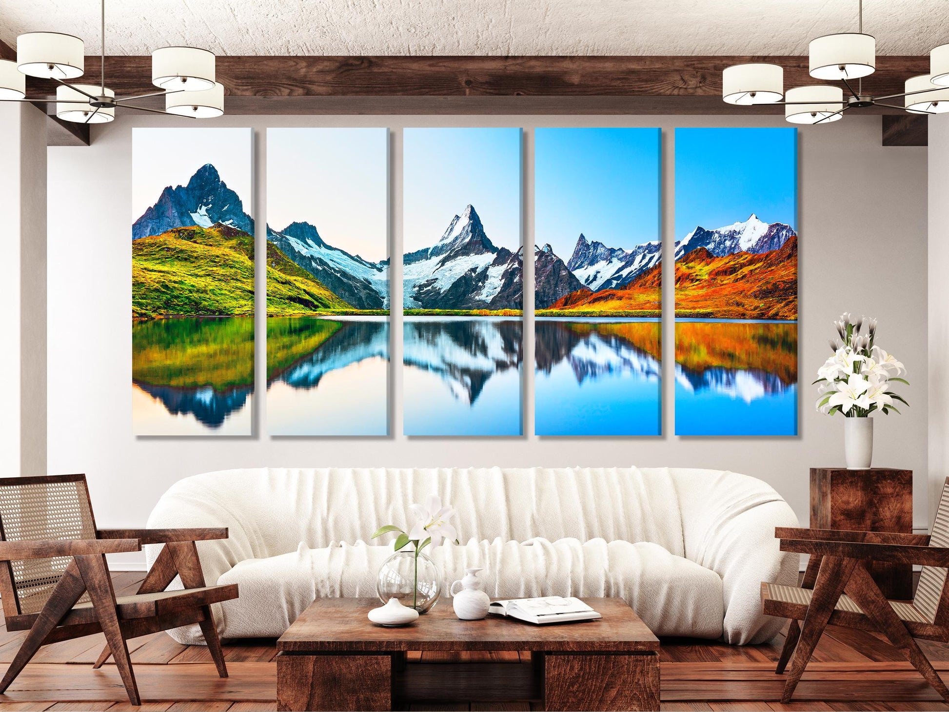 Capture the breathtaking beauty of Switzerland with this stunning canvas featuring the iconic sunrise over the Bernese range above Bachalpsee Lake. The majestic peaks of Eiger, Jungfrau, and Faulhorn are reflected perfectly in the serene waters, creating a vibrant and peaceful scene. This high-quality nature photography print is ideal for bringing a sense of adventure and natural beauty to your living room, bedroom, or office, making it perfect for those who appreciate the grandeur of the Swiss Alps.