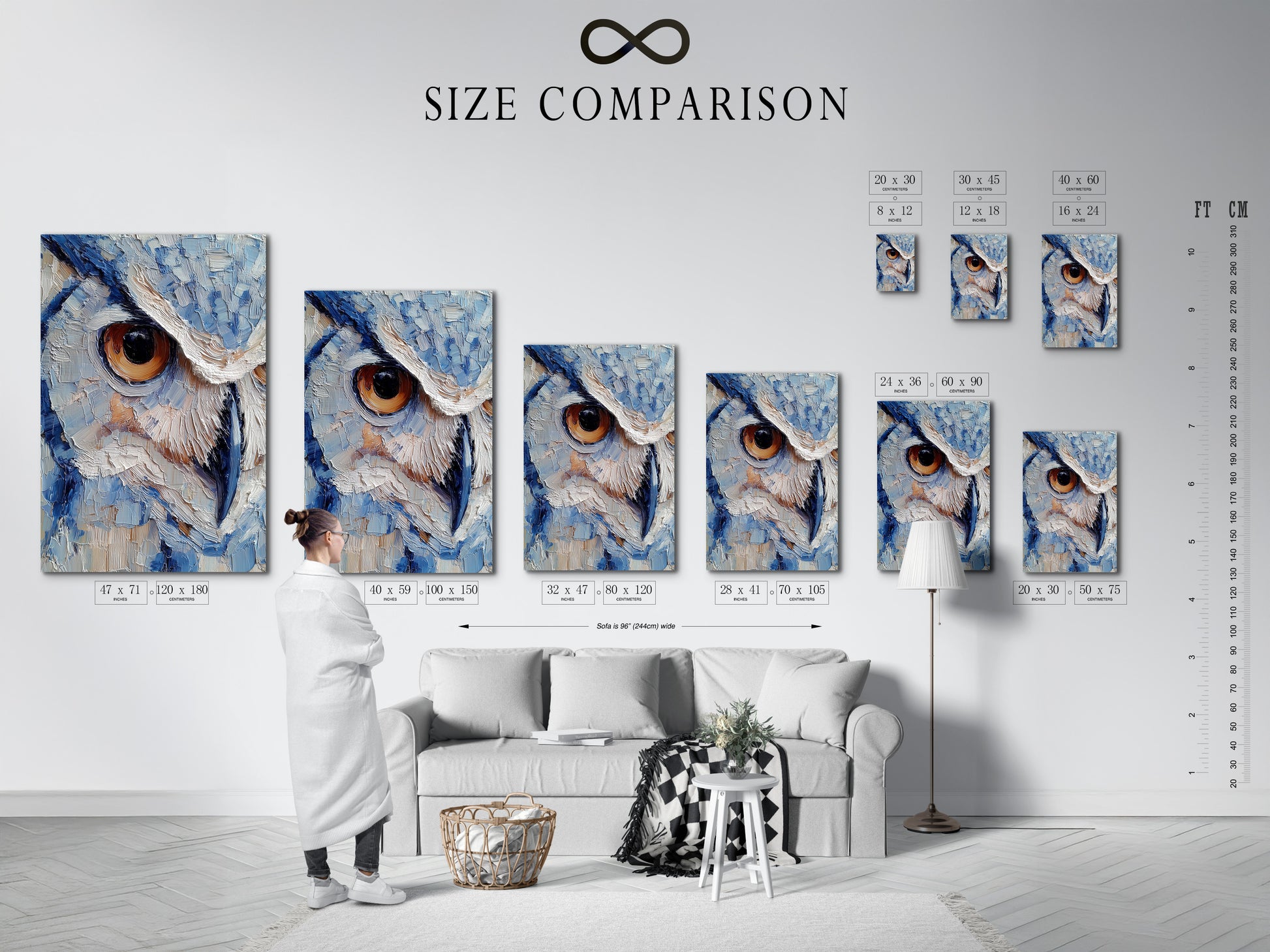 Owl Canvas Art, Bird Painting, Animal Wall Decor, Wildlife Artwork, Farmhouse Art Print, Blue Owl Print, Nature Art, Rustic Home Decor, Lodge Wall Art, Cabin Decor, Modern Farmhouse, Scandinavian Wall Art, Blue and White Art, Animal Portrait, Living Room Art, Bedroom Decor, Office Art, Study Room Decor
