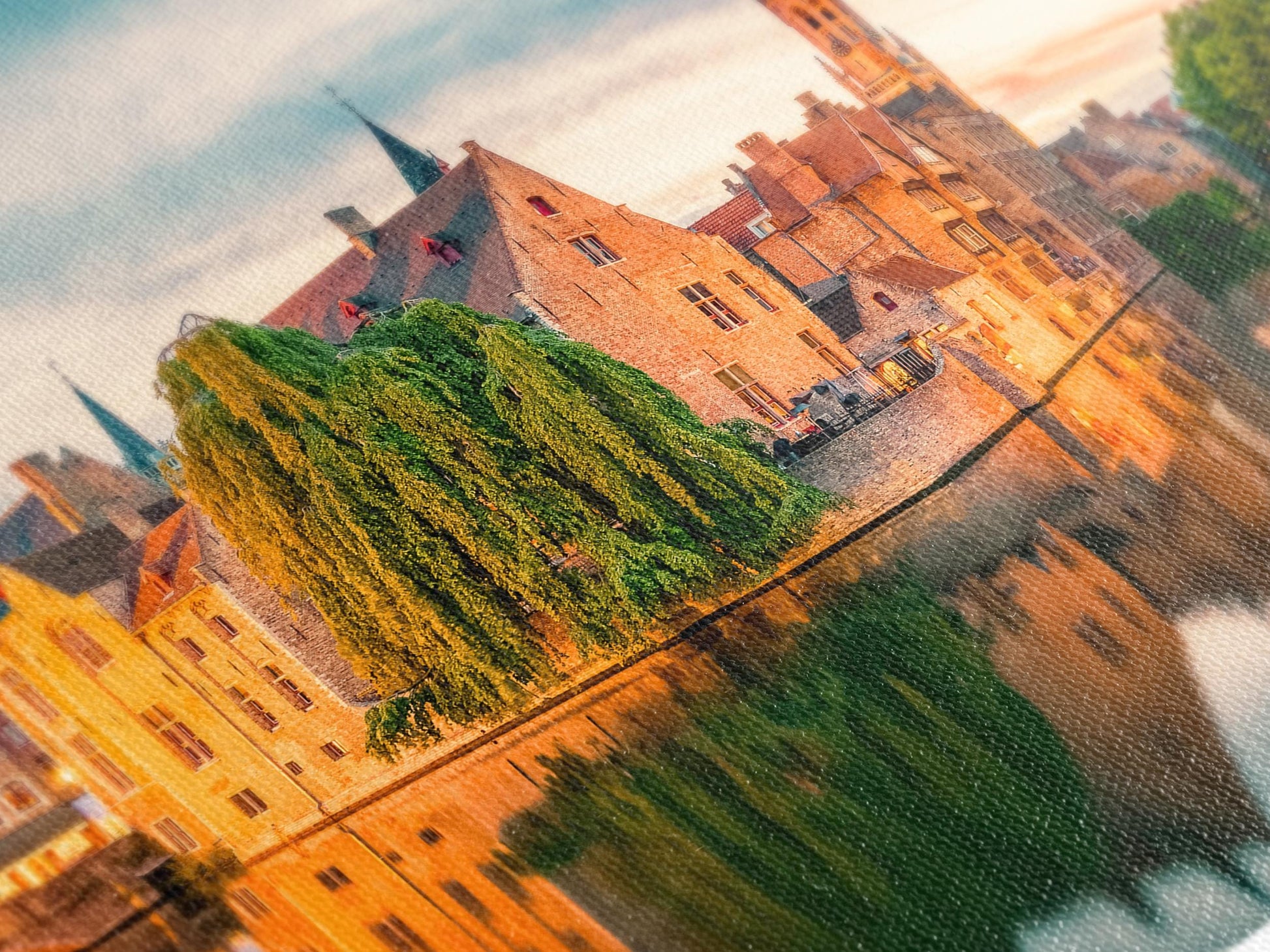 Bruges Cityscape - Belgium Canvas Print, Large European Architecture Wall Art Bruges Sunset Photography, Extra Large Travel-Inspired Artwork