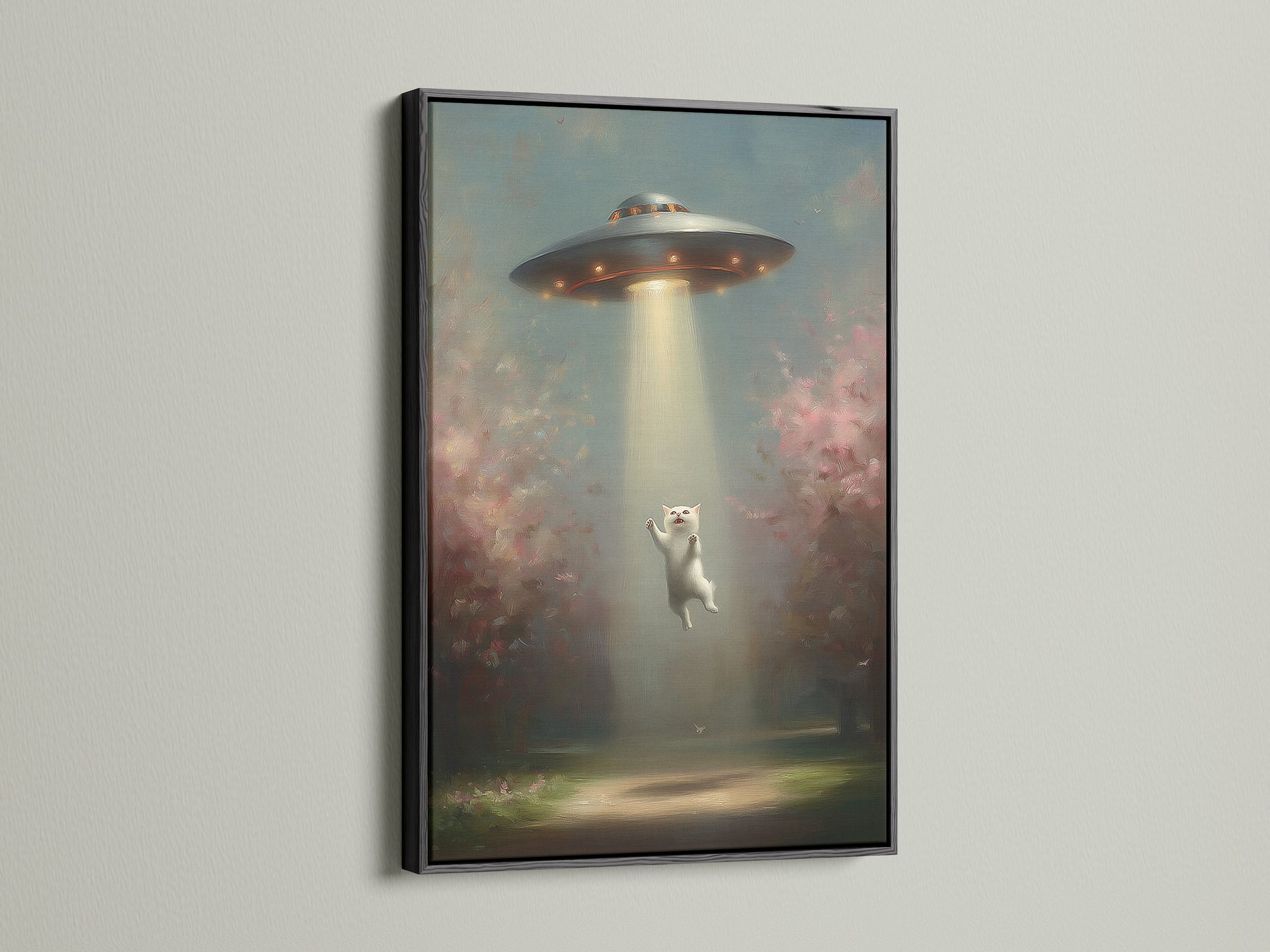 UFO Cat Art, Alien Abduction Art, Canvas Art, Wall Decor, Art Print, Prints, Framed Wall Art, Framed Canvas, Floating Frame Art, Gallery Wrapped Canvas, Modern Wall Art, Contemporary Wall Decor, Funny Wall Art, Quirky Wall Art, Space Art, Sci-Fi Art, Cat Lover Gift, Home Office Art, Living Room Wall Art, Bedroom Wall Decor, Ready to Hang Art