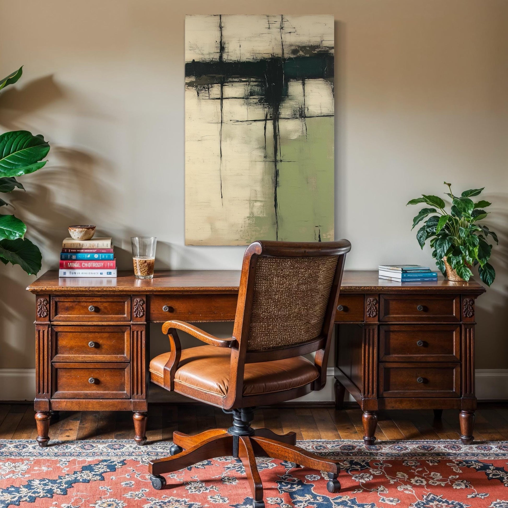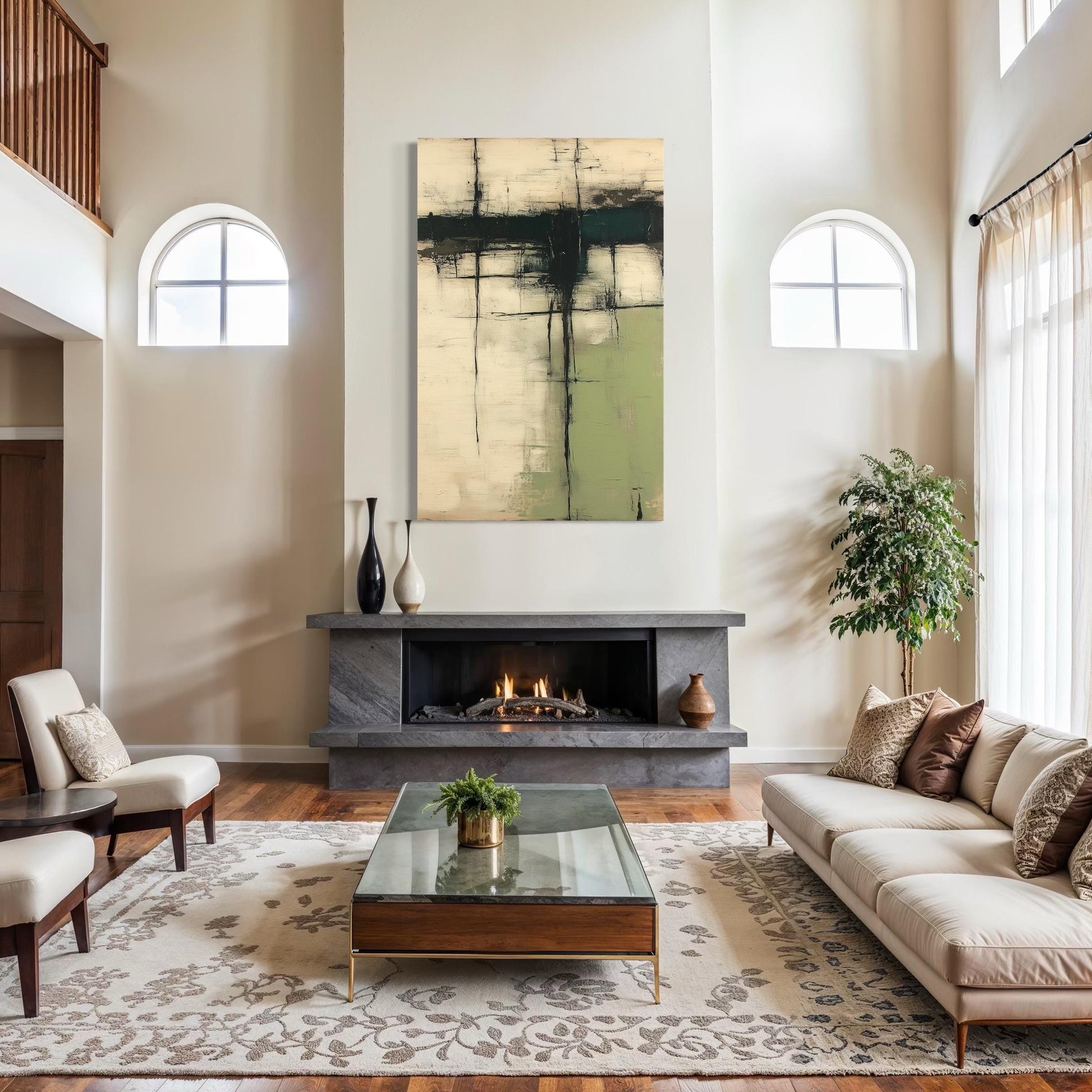 • 🖌 Minimalist green beige abstract painting for a calming and refined ambiance
