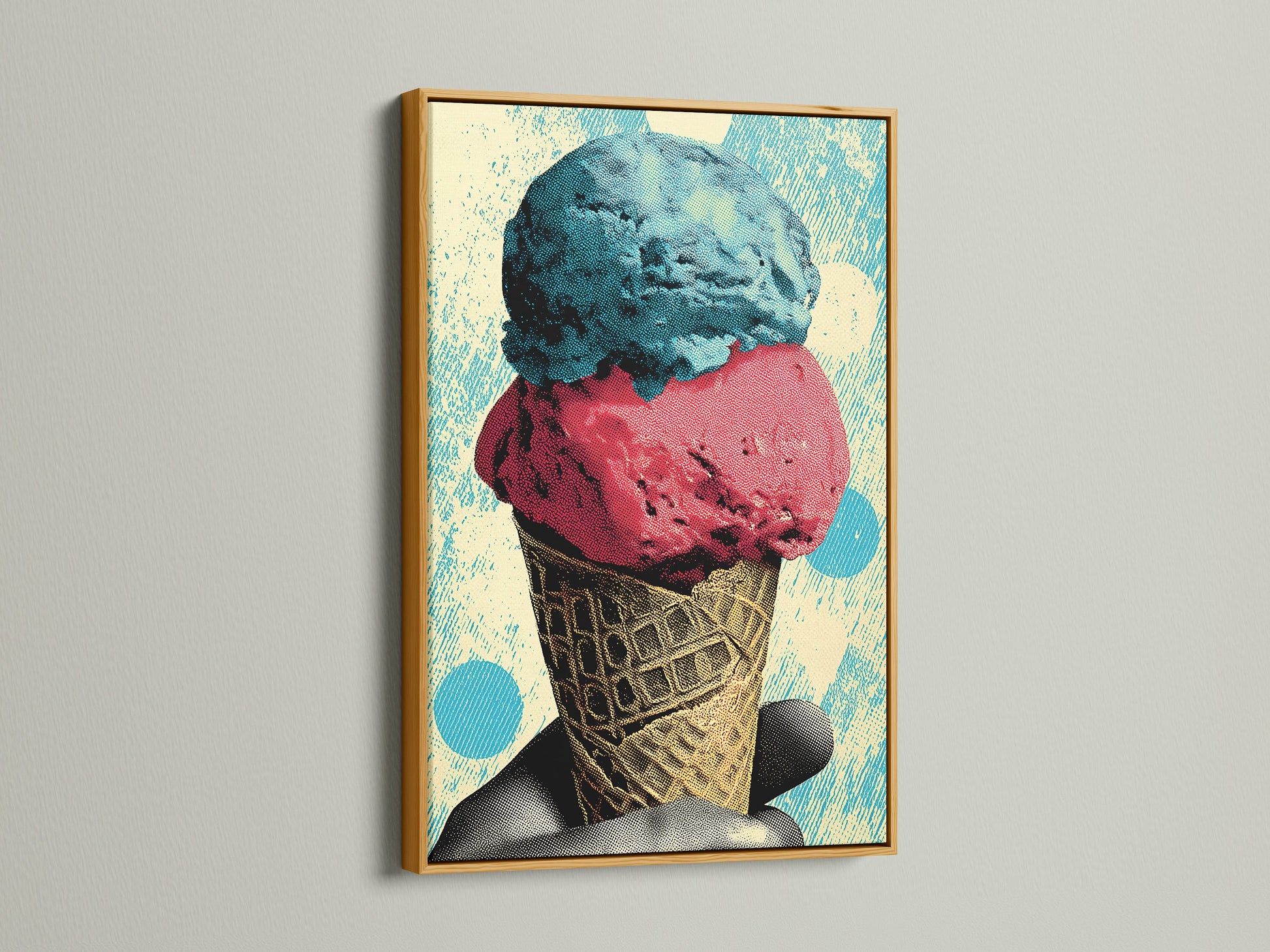 This Ice Cream Canvas Art is a unique piece designed to bring a touch of sweetness and pop to modern interiors. It serves as versatile wall decor that complements contemporary kitchens, dining areas, and cafes. Perfect for adding a playful touch to any space, this print is ideal as kitchen wall art, dining room decor, or a fun addition to an ice cream shop.