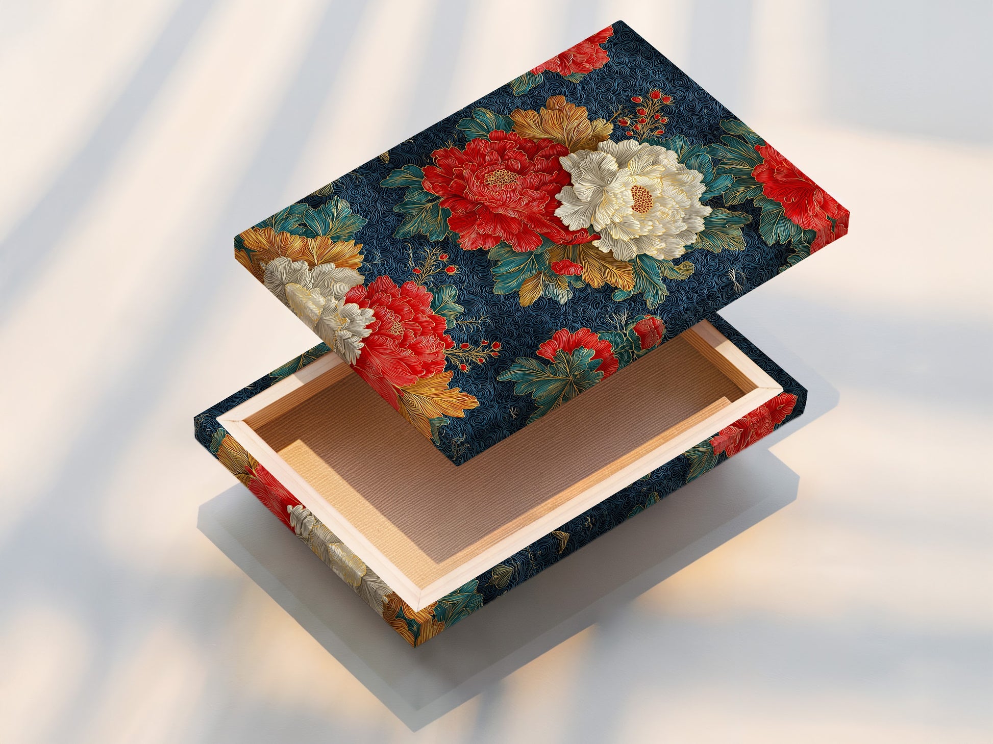 Transform your living space with our premium Peony Canvas Art, a fusion of Floral Print, Oriental Wall Decor, and Botanical Artwork. Each canvas is meticulously crafted to showcase rich colors and crisp details, ideal for enhancing homes and boutique spaces. Elevate your decor with our Navy Blue and Gold Wall Art, a perfect blend of tradition and modern design.