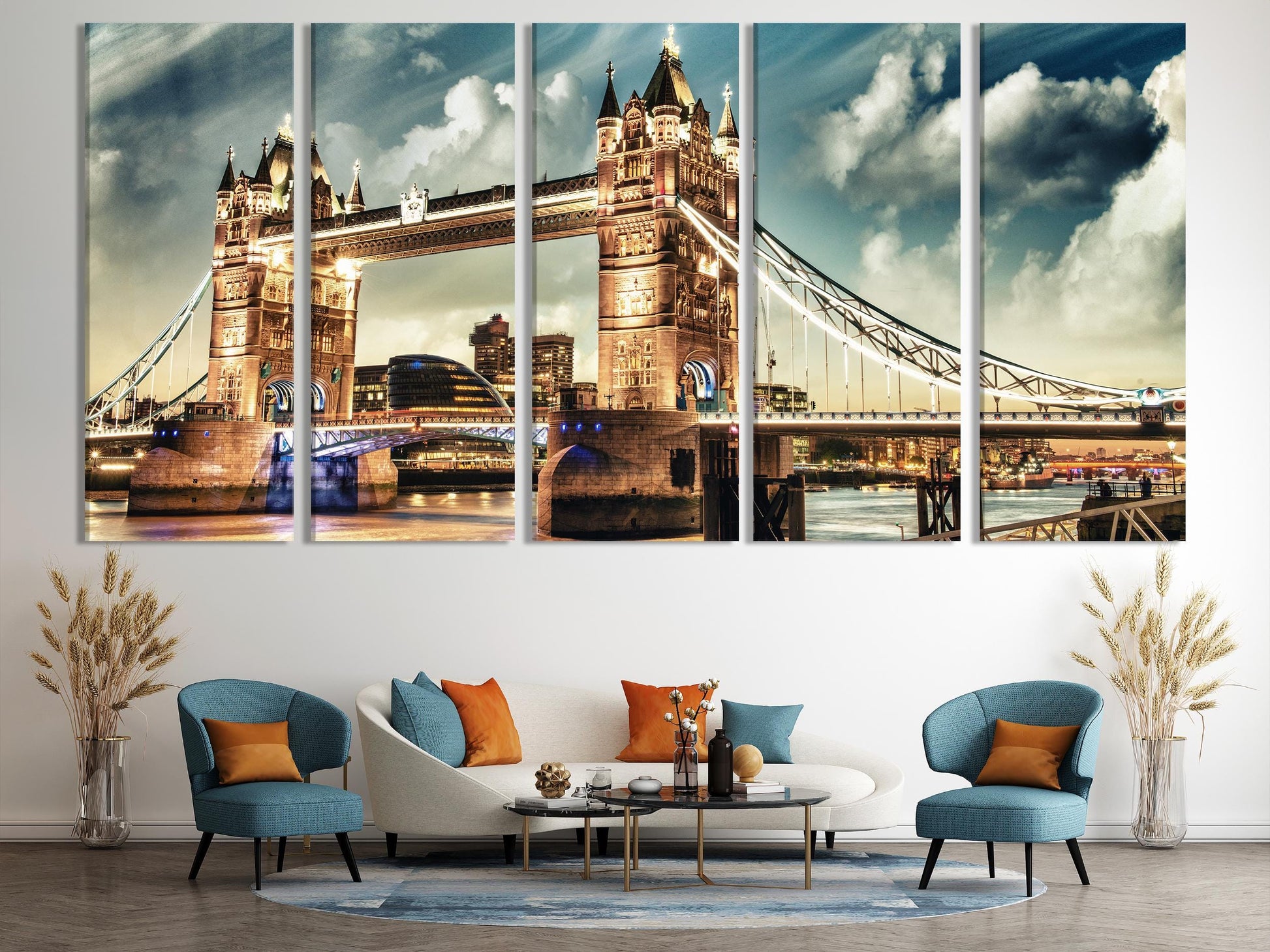 London Tower Bridge Canvas Print, 3-Panel London Wall Art, UK Landmark Wall Decor, London Bridge Art Print, Office Wall Decor London Artwork