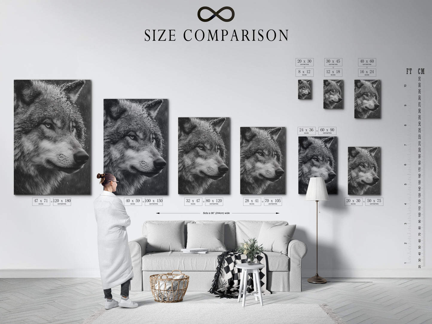 Enhance your space with our premium Wolf Canvas Art, a striking piece of Black and White Animal Print perfect for adding a touch of nature to modern spaces. This Wildlife Wall Decor is expertly crafted as a Canvas Print, offering a high-quality, gallery-ready look for your home or office. Each piece is designed to capture the intricate beauty and essence of wildlife.