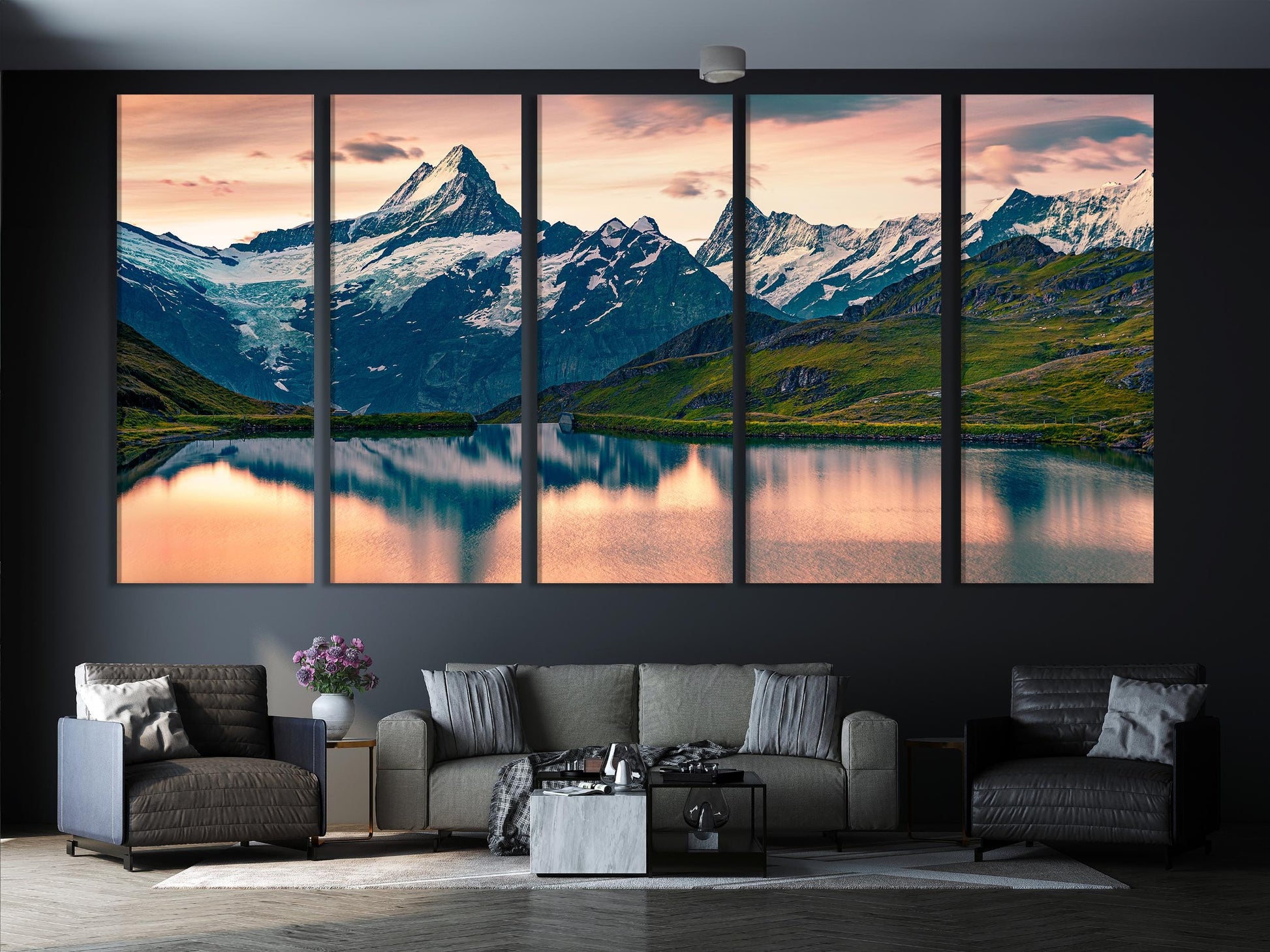 Bring the serene beauty of the mountains into your home with this stunning Alpine landscape canvas print 🌄. Perfectly capturing the majestic peaks and the calm reflection in the lake, this art piece adds a tranquil touch to any living space.