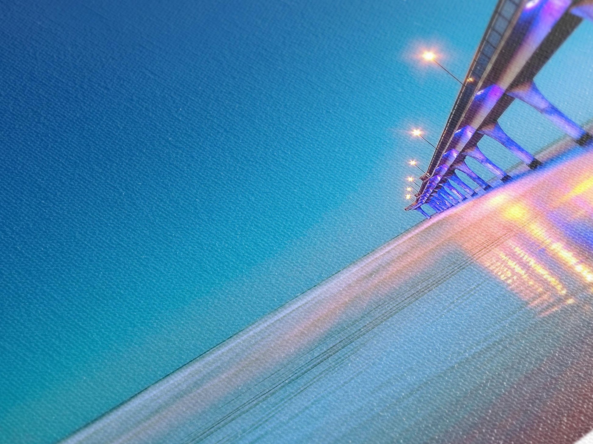 This stunning canvas print of New Brighton Pier in Christchurch captures the serene beauty of the ocean at night. The pier is beautifully illuminated, casting vibrant reflections on the calm waters below, with a striking contrast between the deep blue sky and the soft glow of the pier lights. Perfect for lovers of New Zealand's coastal landscapes, this large artwork adds a touch of modern elegance and tranquility to any living room or bedroom. Printed on high-quality canvas, this piece brings the peaceful charm of New Brighton Beach into your home.