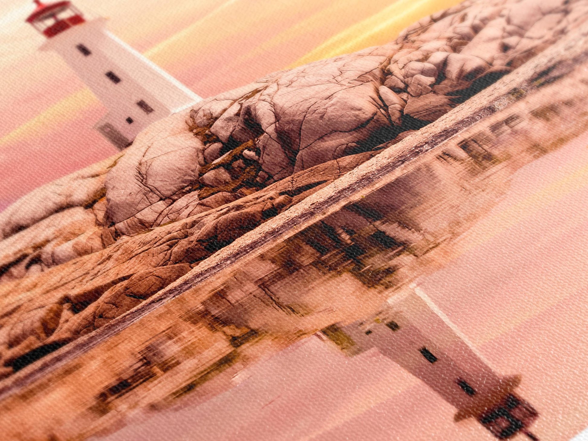 Peggy’s Cove Lighthouse Canvas Print, Large Sunset Wall Art, Oversized Nova Scotia Coastal Artwork for Canadian Home Interior Wall Decor