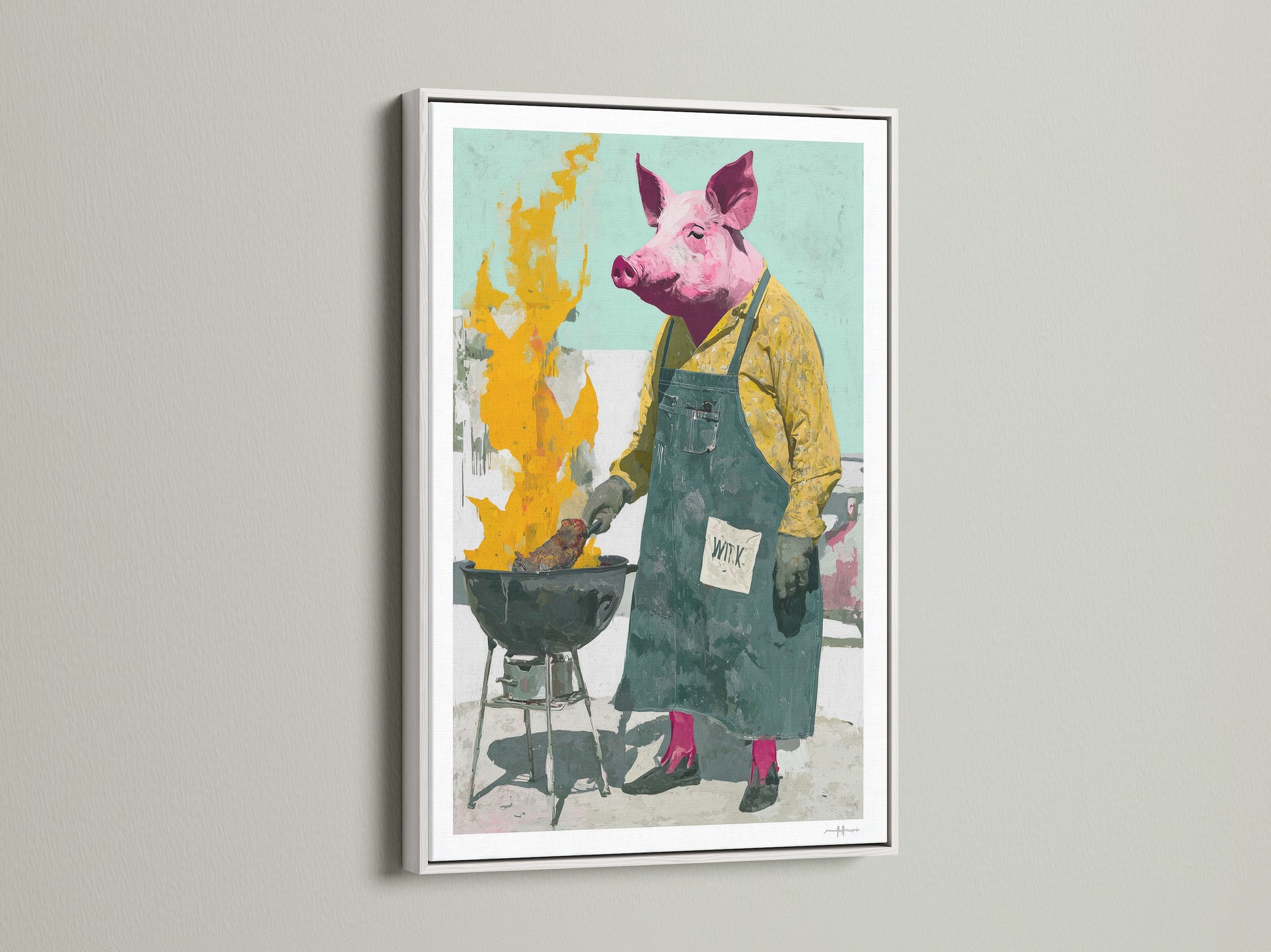 Pig BBQ Chef Canvas Art - Quirky Animal Grill Master Wall Decor, Funny Kitchen Print, Restaurant Artwork, Foodie Gift