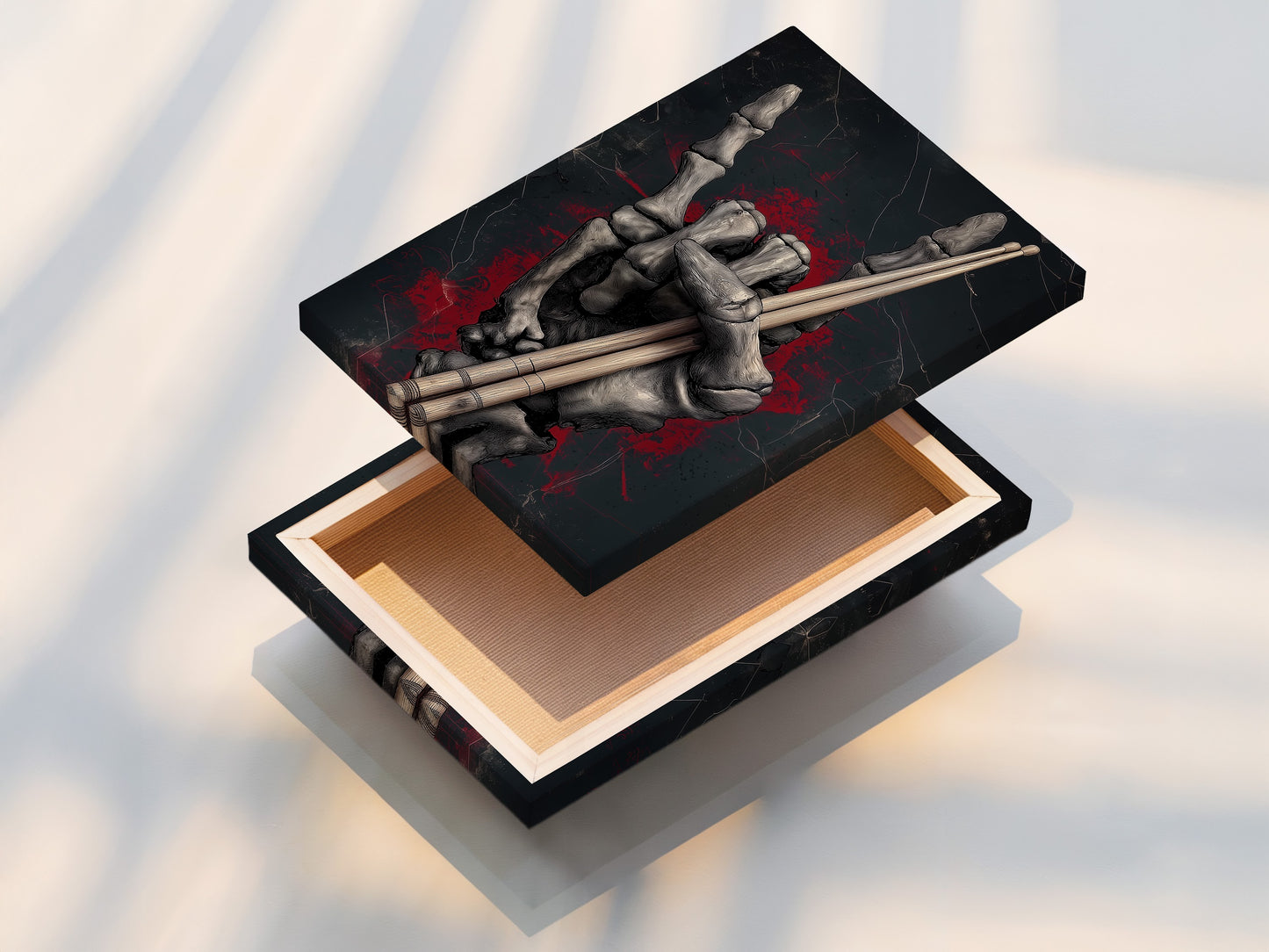 Elevate your space with our unique Drummer Canvas Art, featuring a striking skeleton hand design perfect for adding a touch of gothic flair. This distinctive piece blends Canvas Art with modern Wall Art aesthetics, creating a powerful visual impact for music lovers and dark academia enthusiasts. Ideal as Wall Decor for studios, home bars, or any space needing an edgy touch.