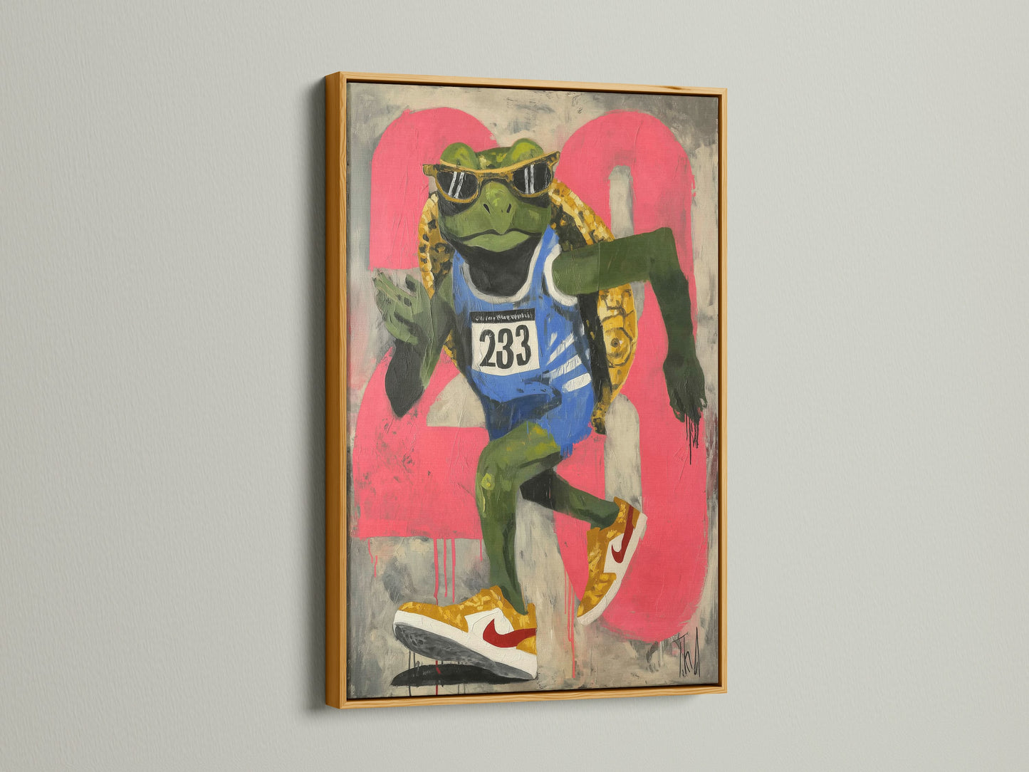 Running Turtle Art Print - Graffiti Sports Animal Canvas Art, Funny Frog Wall Decor, Youth Room, Boutique Artwork Gift