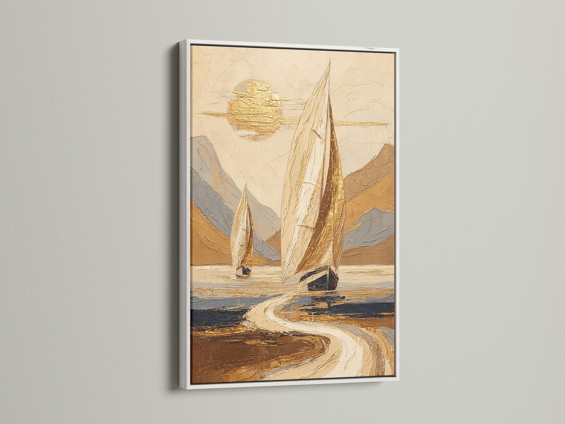 Sailboat Canvas Art, Nautical Art Print, Coastal Wall Decor, Seascape Artwork, Beige Art, Gold Sailboat Art, Minimalist Boat Art, Large Canvas Print, Oversized Art, Beach House Decor, Maritime Art, Sailing Boat Print, Neutral Wall Art, Coastal Home Art, Boat Painting, Abstract Nautical Art, Modern Seascape Art, Housewarming Gift