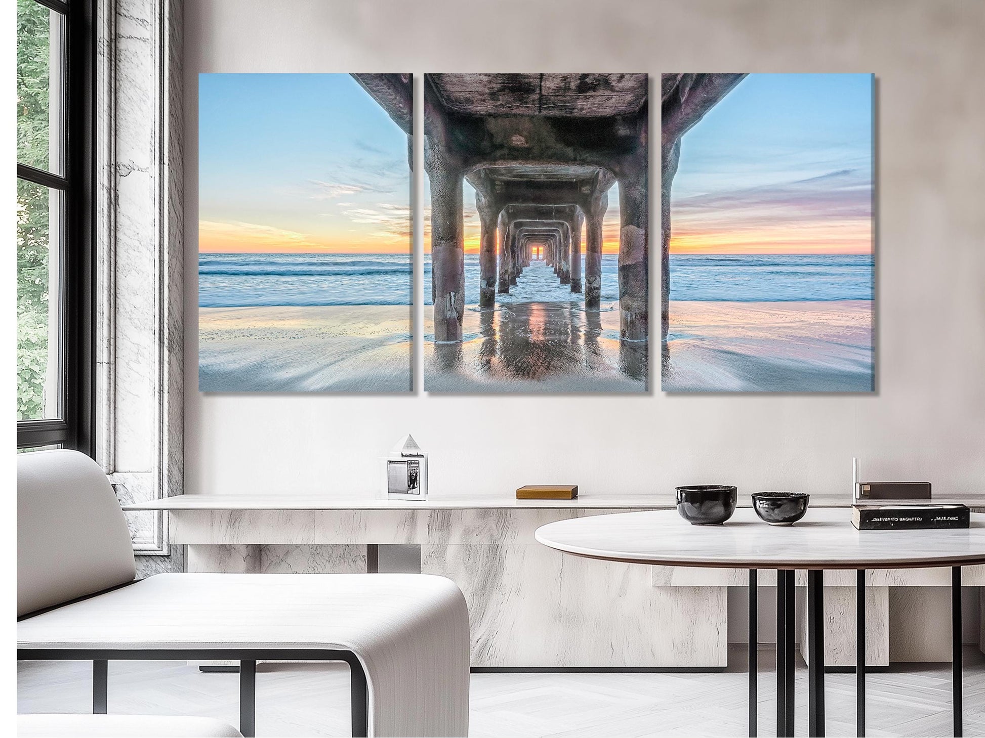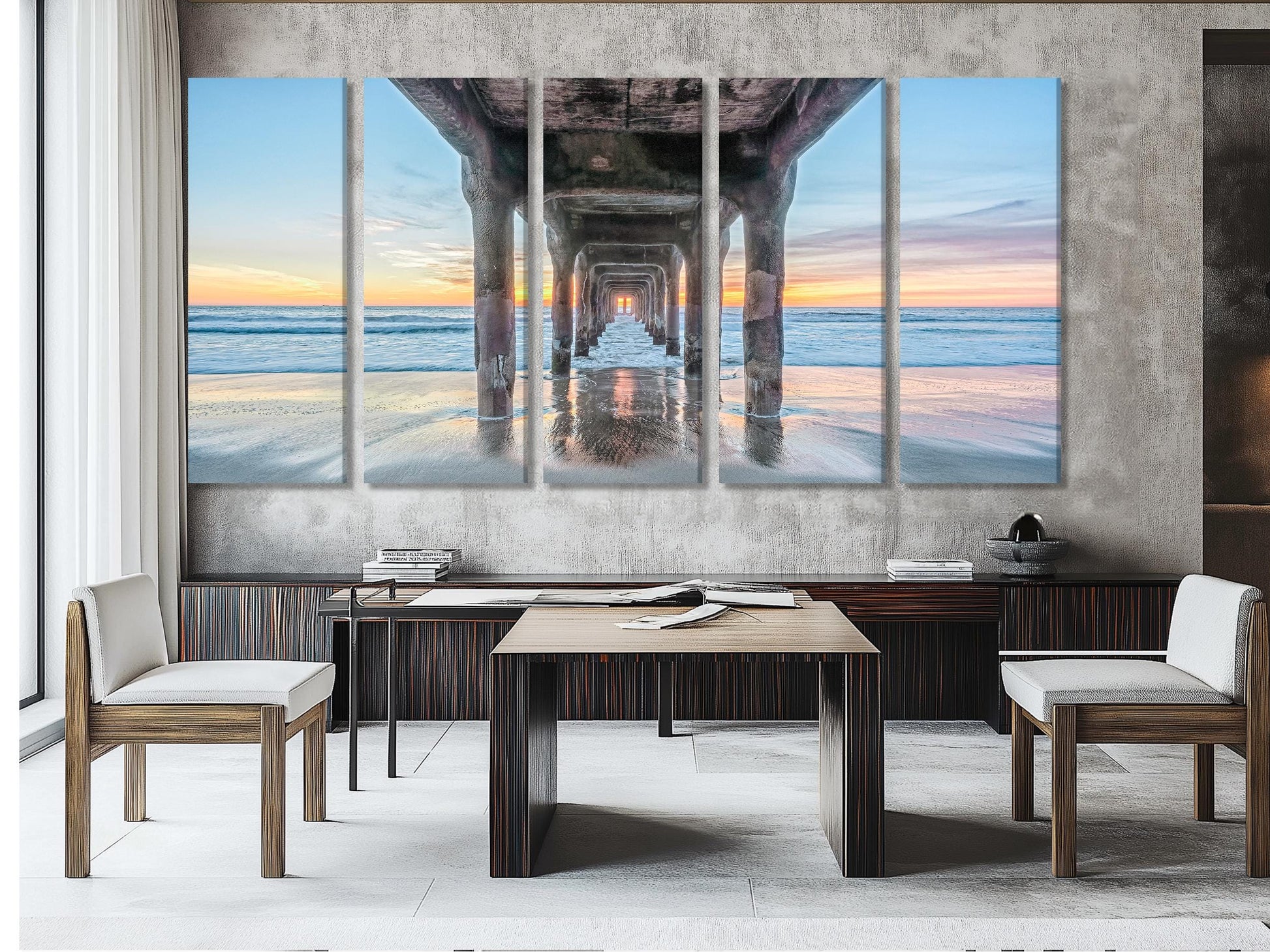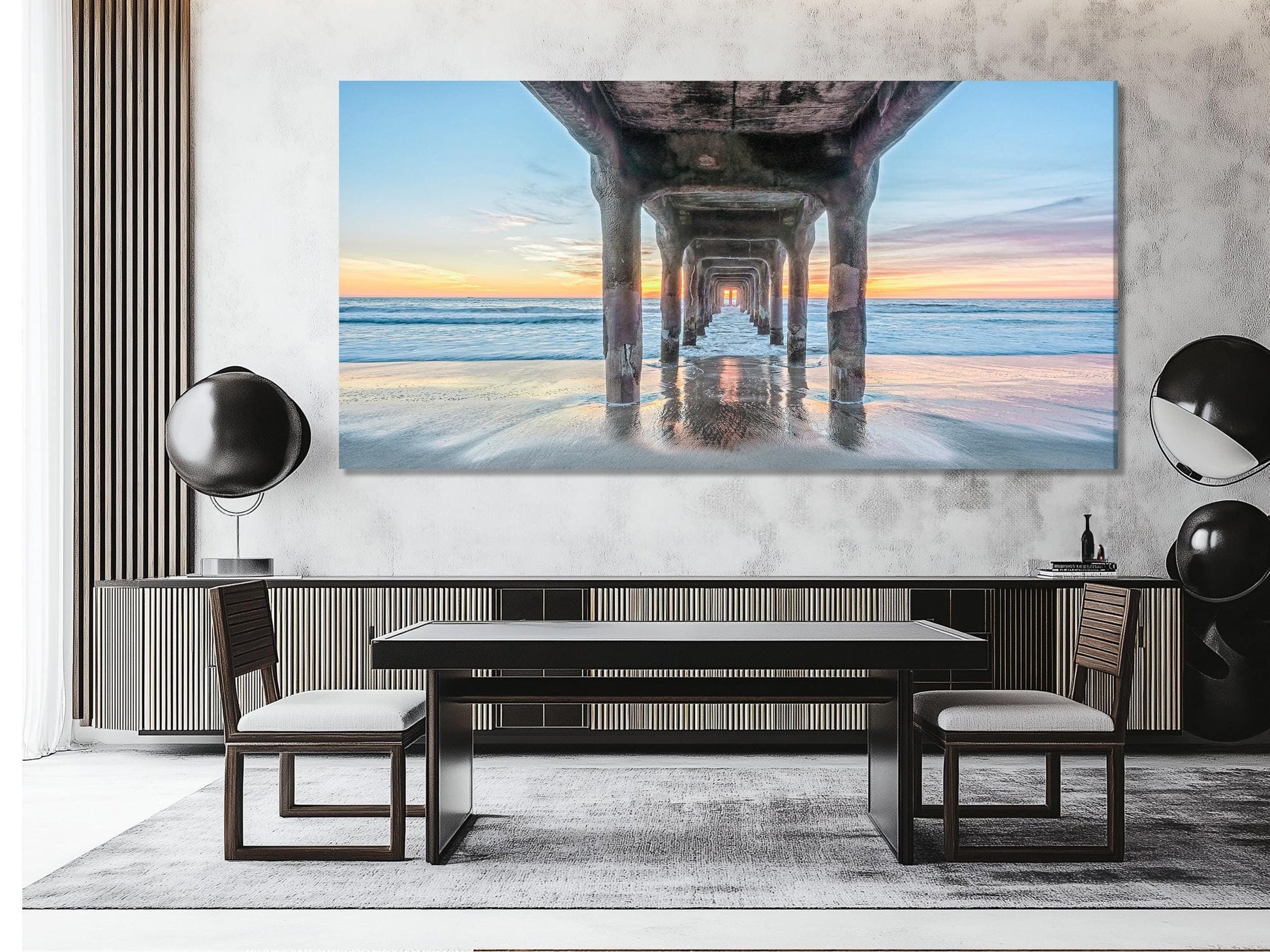 Under the Pier Canvas Print, Sunset Beach Wall Art, Large Coastal Art, California Ocean View, Pier Canvas Artwork, Modern Nautical Decor