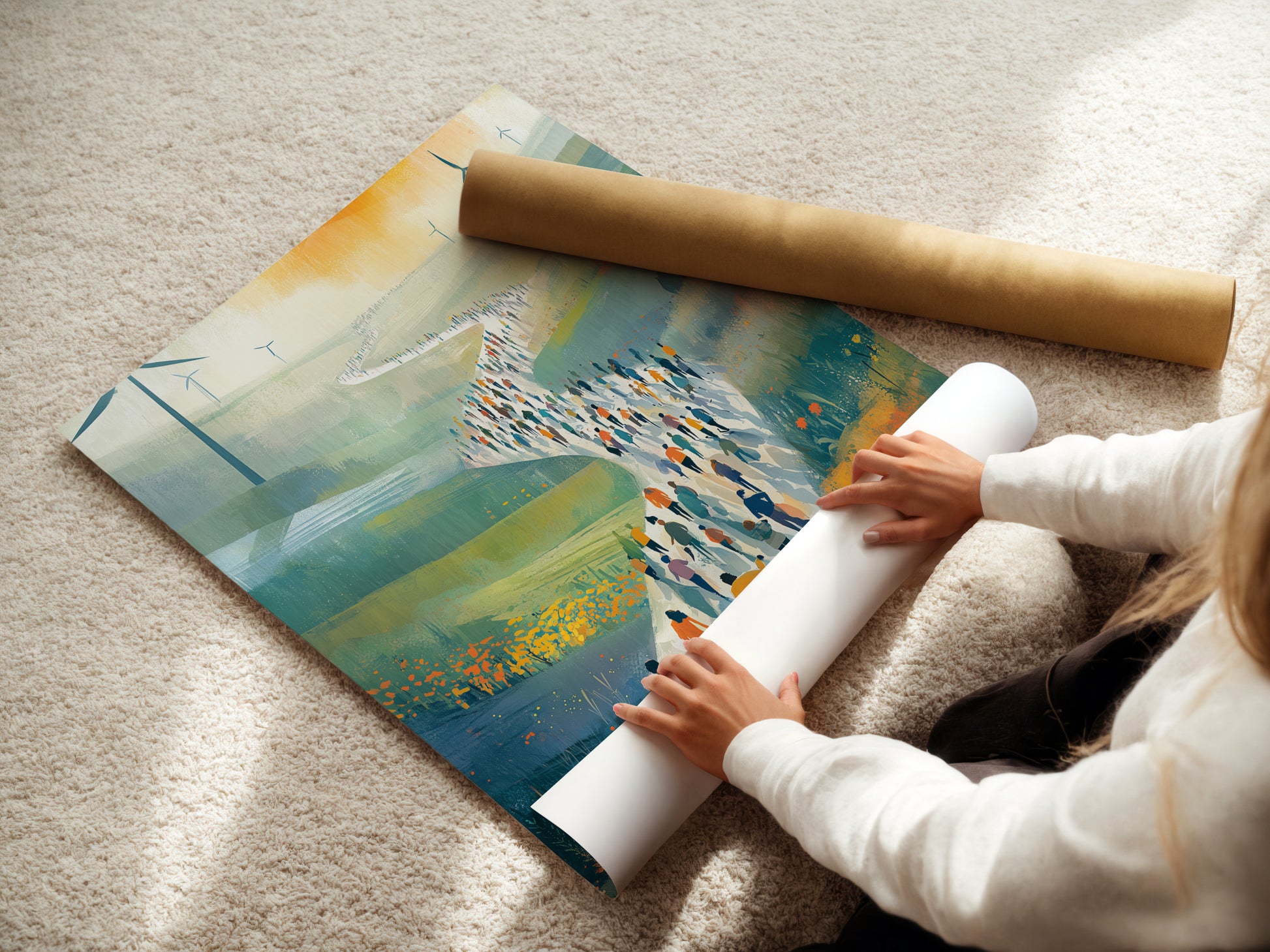 Art Print, Wall Art, Landscape Art, Nature Print, Green Energy Decor, Modern Art, Contemporary Print, Walking Path Art, People Art, Rolling Hills Art, Wind Farm Art, Turbine Artwork, Sustainable Art, Eco Art, Renewable Energy, Living Room Art, Office Wall Decor, Canvas Art, Modern Landscape, Contemporary Decor