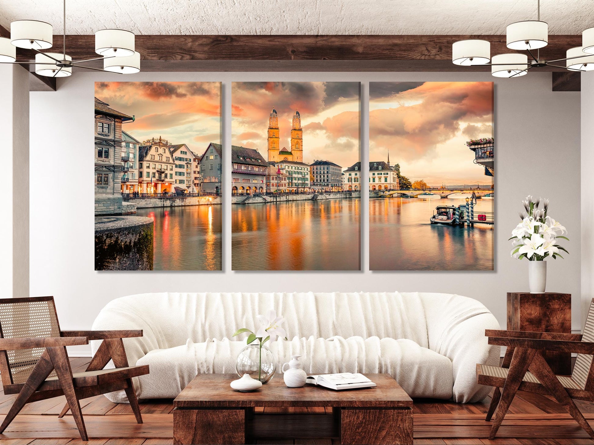 Zurich Wall Art Grossmunster Church Canvas Print Zurich Cityscape Art Print Limmat River Wall Art Swiss Landscape Wall Decor Zurich Artwork